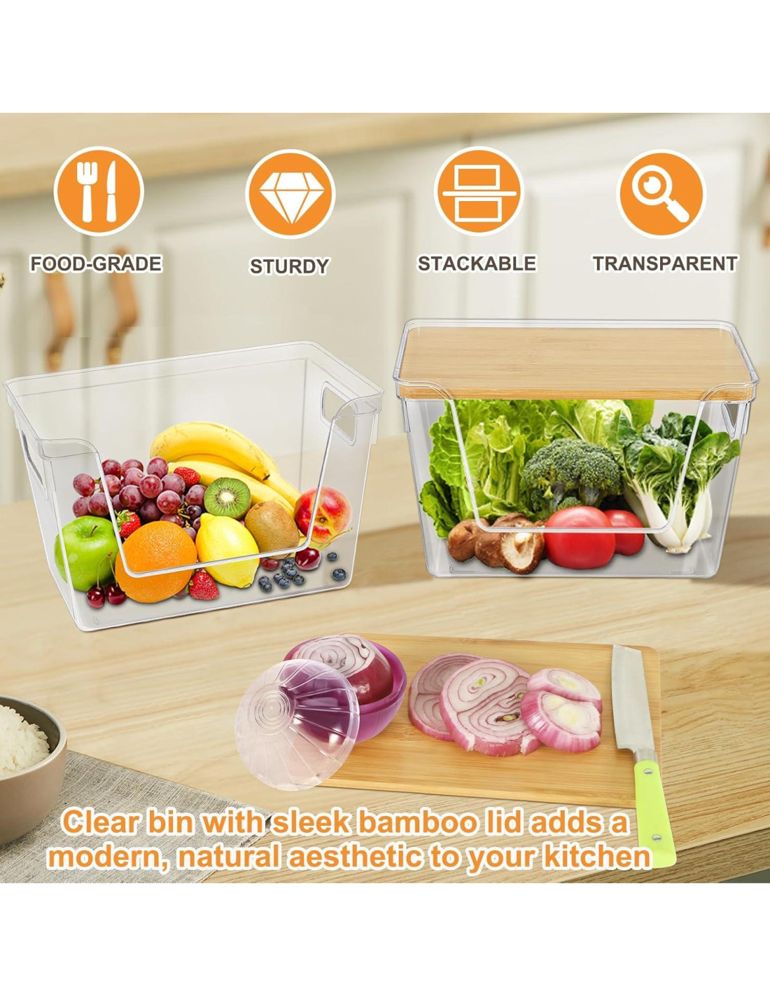 - Diseño que Ahorra Espacio: Con el diseño compacto y apilable, estos contenedores de almacenamiento de productos de bambú se adaptan perfectamente a cualquier encimera, estante o dentro de un gabinete. Ideales para cocinas y despensas más pequeñas, su diseño elegante y versátil complementa sin esfuerzo cualquier estilo de decoración de cocina.