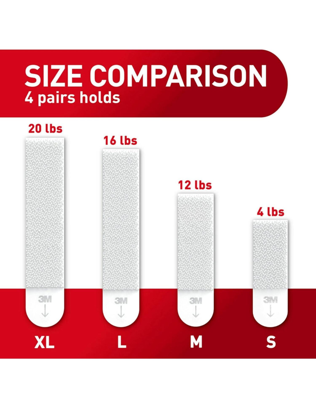 TIRA PARA COLGAR CUADROS MED/L Sostiene fuertemente, se quita limpiamente. 4 pares medianos/capacidad de peso 12 lb (5.44 kg) a 8 pares grandes/capacidad de peso 16 lb (7.26 kg).