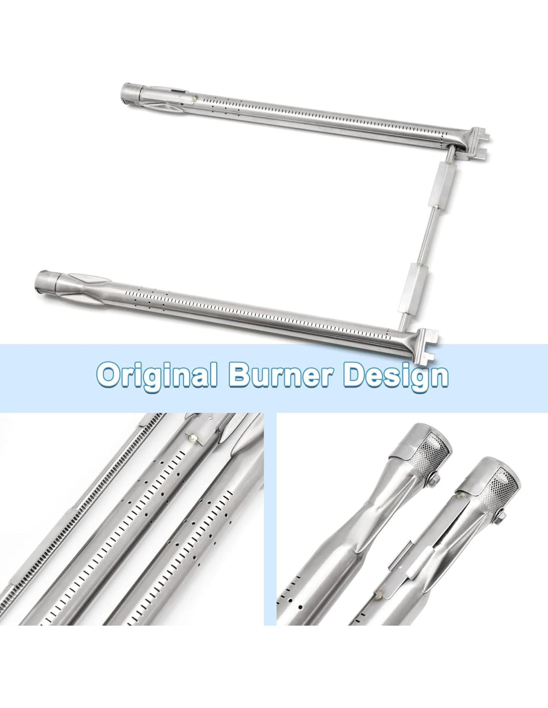 - [69785 Quemador de Parrilla] -Dimensión: El Quemador Principal es 18" L (45.72 cm), El Tubo de Cruce es 10 1/2" L (26.67 cm). -Material: Acero Inoxidable SUS304. -Quemador Original OEM: Nuestro tubo de quemador weber spirit ii e-210 es del mismo fabricante que el original, lo que es muy adecuado para tus necesidades originales y asequibles. Tanto el proceso de producción como la calidad son los mismos que el OEM. Incluso nuestro acero inoxidable es más grueso y duradero que los originales.