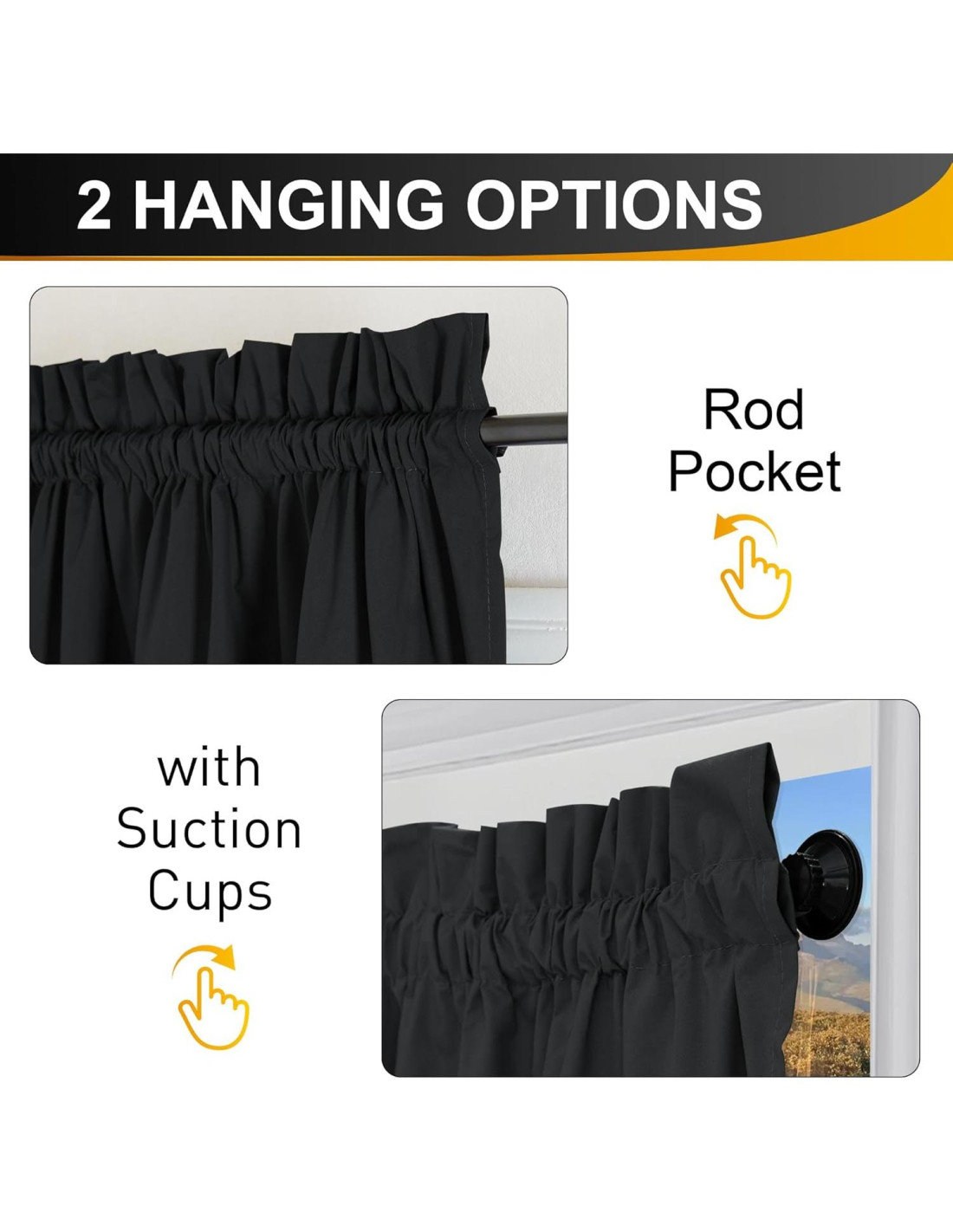 - Diseño Único: Vendido por 1 panel. Las cortinas opacas portátiles con cuerdas en la parte superior cuentan con 2 ventosas de bloqueo también con un bolsillo para varilla para que puedas ajustar la cortina a cualquier ventana que se puede instalar en segundos.
