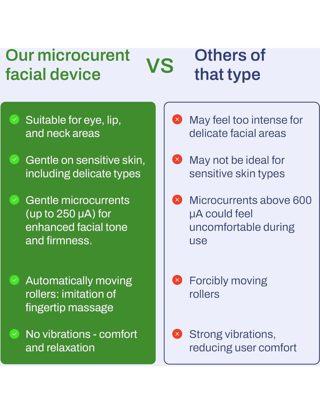 - Eleva tu rutina diaria con nuestro dispositivo facial de microcorriente y herramienta de masaje facial, diseñado para proporcionar una experiencia relajante mientras complementa tus herramientas de cuidado de la piel favoritas.