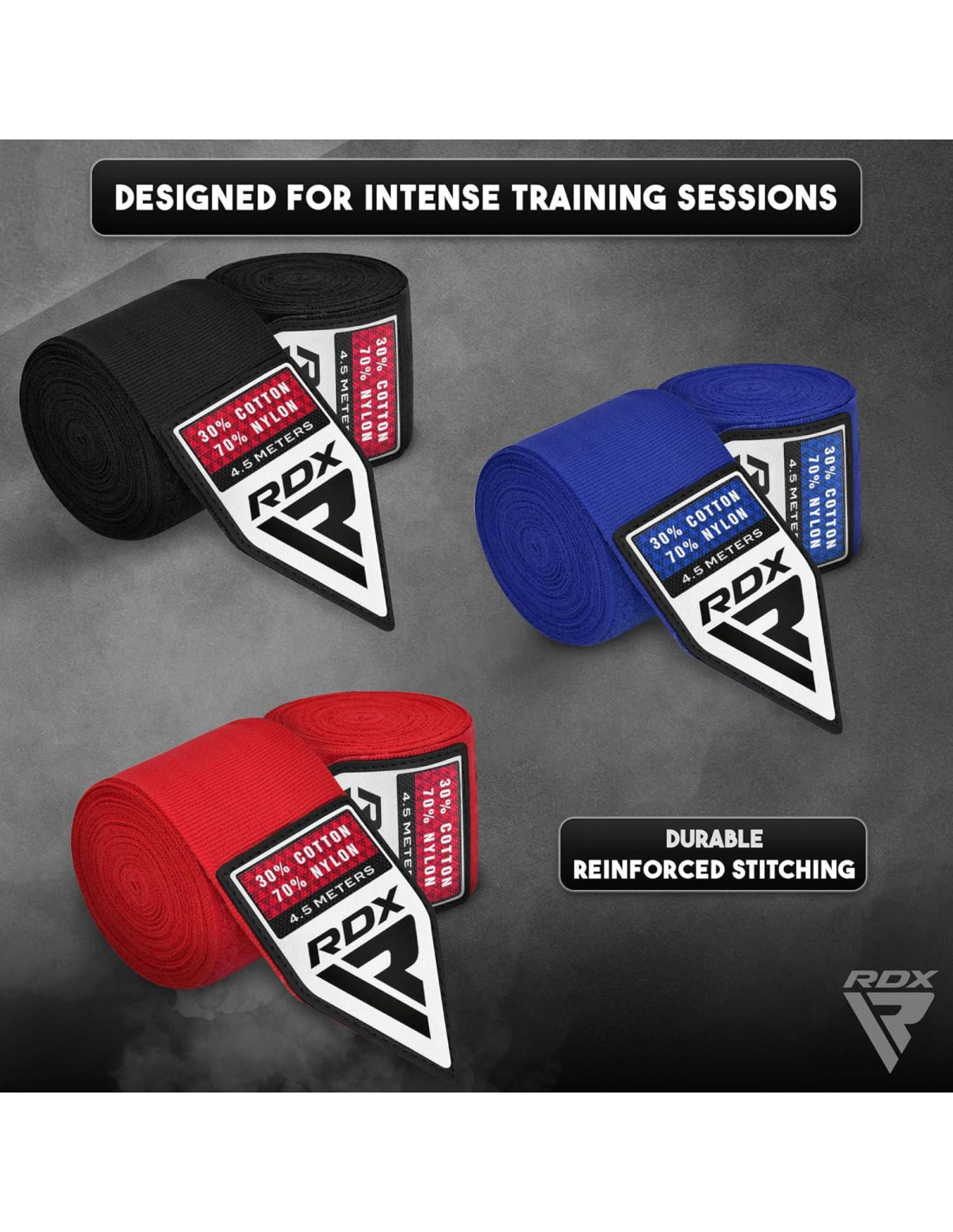 - LONGITUD EXTENDIDA DE 4.5M PARA UN SOPORTE MEJORADO - ¿Cansado de envolturas que apenas cubren tus manos? Las envolturas de boxeo RDX cuentan con una longitud extendida de 4.5M (180 pulgadas) para que puedas envolver tus puños de manera ajustada, bloquear tus dedos y estabilizar tus muñecas, todo con una envoltura poderosa. Esta longitud extendida permite múltiples capas de acolchado que ayudan a dispersar los impactos pesados de manera uniforme en tus manos. Ya sea que estés lanzando jabs en boxeo o combinaciones en MMA, ve con todo sabiendo que las envolturas RDX Muay Thai te respaldan.