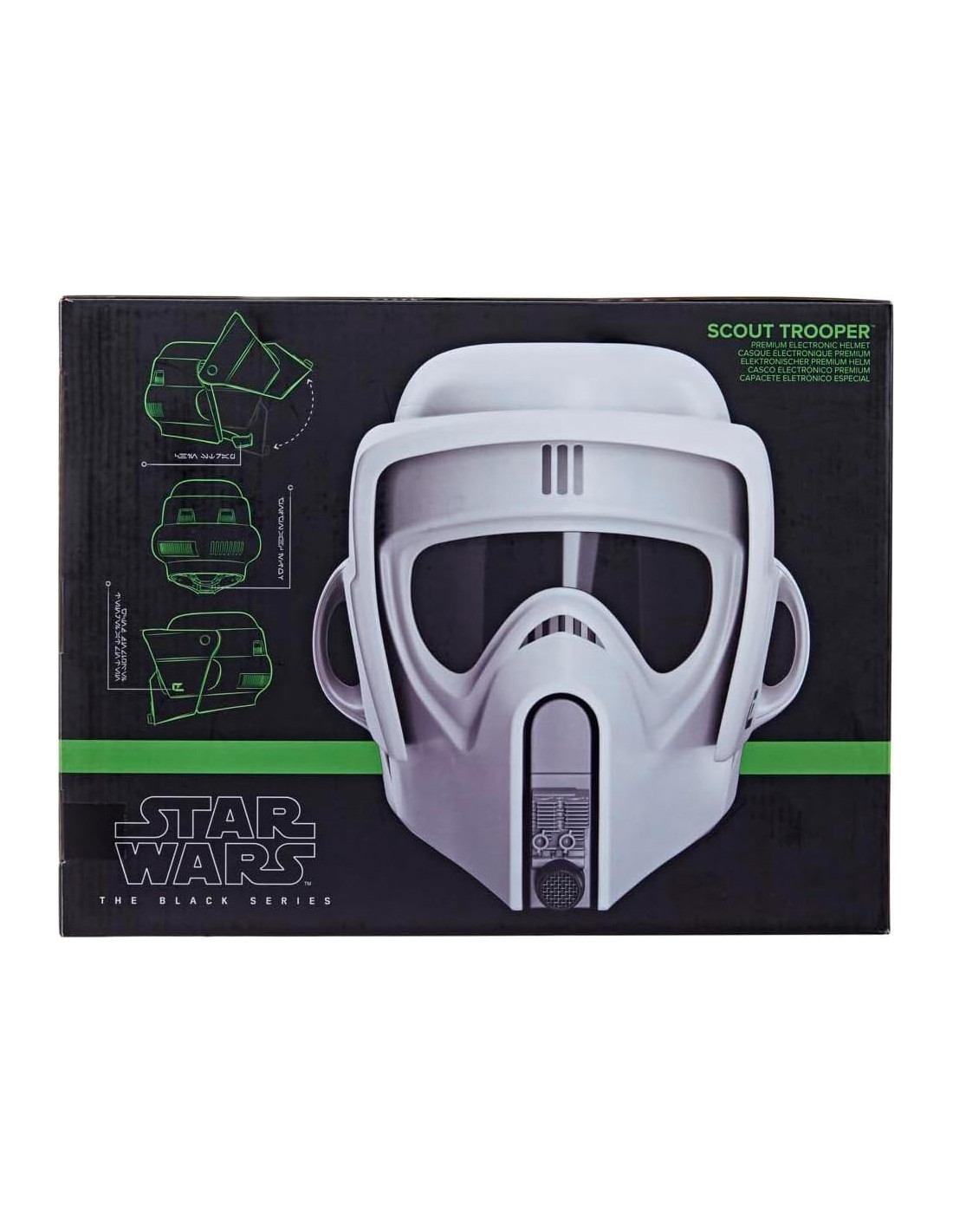 - CASCO ELECTRÓNICO PREMIUM: Con un diseño altamente detallado, inspirado en la película, ajuste ajustable y distorsión de voz electrónica, este casco de Scout Trooper de la Black Series a escala completa es una adición icónica a la colección de cualquier fan de Star Wars