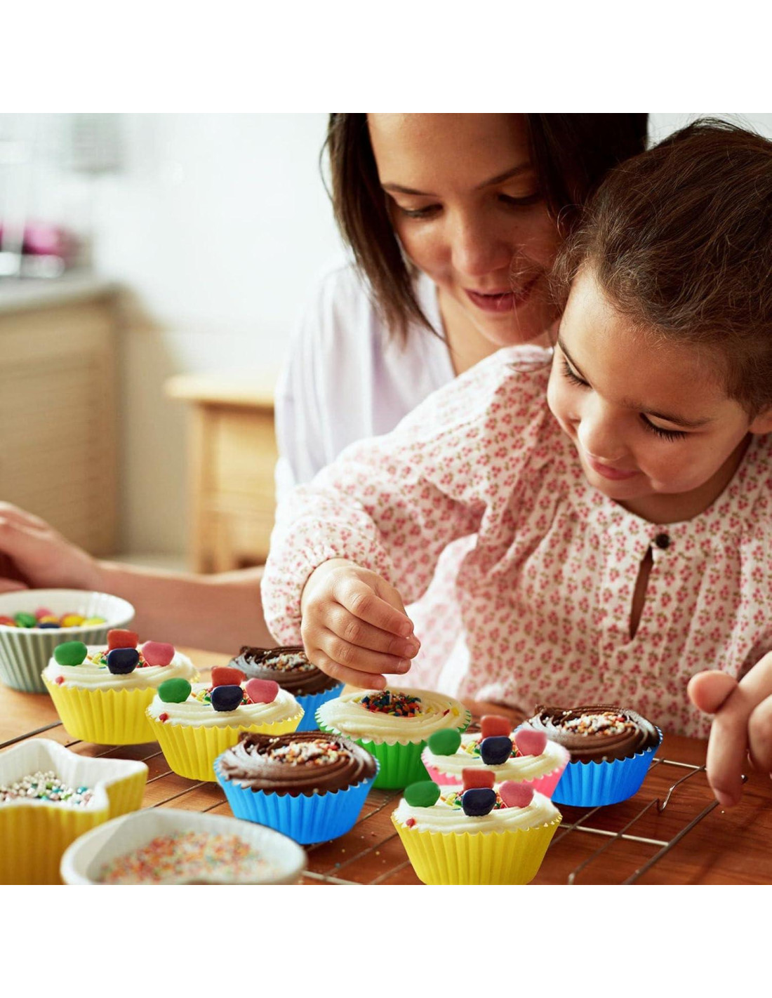 - Tamaño Adecuado: Cada forro de cupcake tiene un tamaño de 5 cm * 3 cm (1.96 pulgadas * 1.18 pulgadas), ideal para hornear muffins o cupcakes estándar, los forros de cupcake coloridos también se pueden usar para sostener caramelos, galletas, algodón de azúcar, nueces, etc.