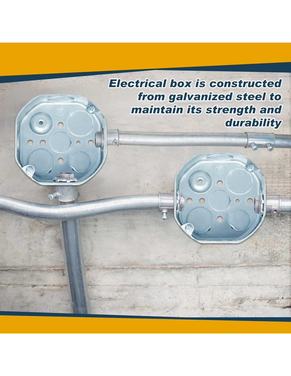- Construcción de Acero Galvanizado: fabricada con acero galvanizado, nuestra caja de conexiones eléctricas y tapa cuentan con calidad y resistencia; Son robustas, resistentes y proporcionan la durabilidad necesaria para sus necesidades eléctricas a largo plazo; Además, son adecuadas para paredes con clasificación de fuego de 2 horas, asegurando buena eficiencia y longevidad