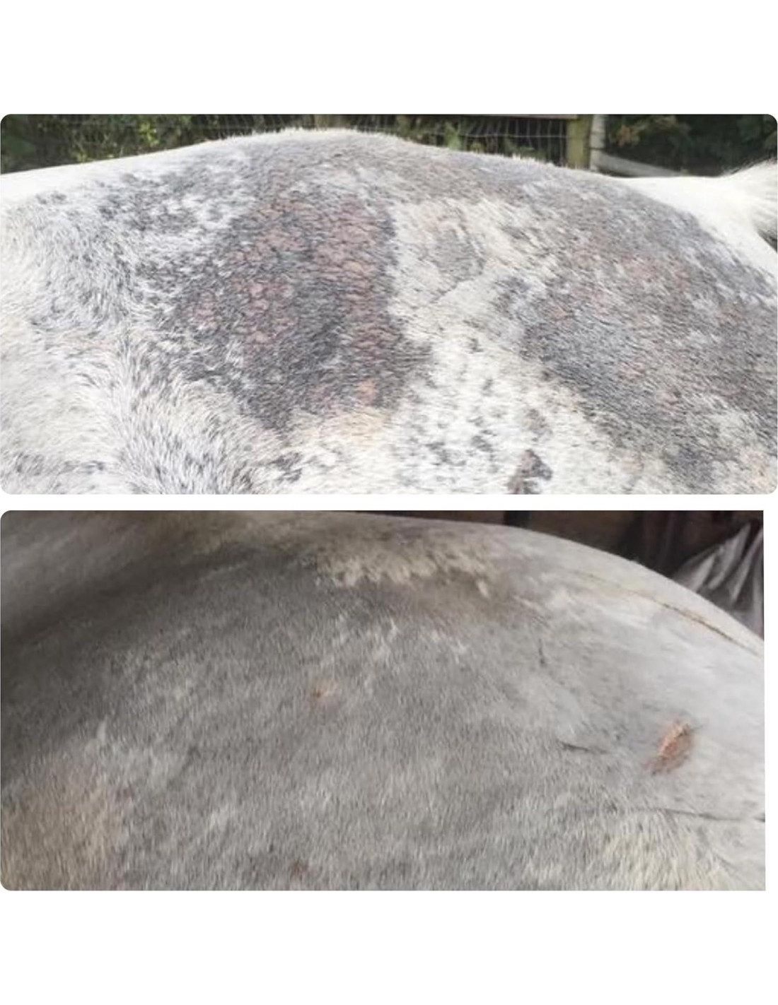 - ALIVIO PARA LA PIEL DEL CABALLO: Extremadamente efectivo en escamas de crines y cola, frotamiento de cola, ronchas y mantenimiento diario después del tratamiento de condiciones de piel como escaras y pododermatitis para promover el crecimiento del cabello y una piel saludable.