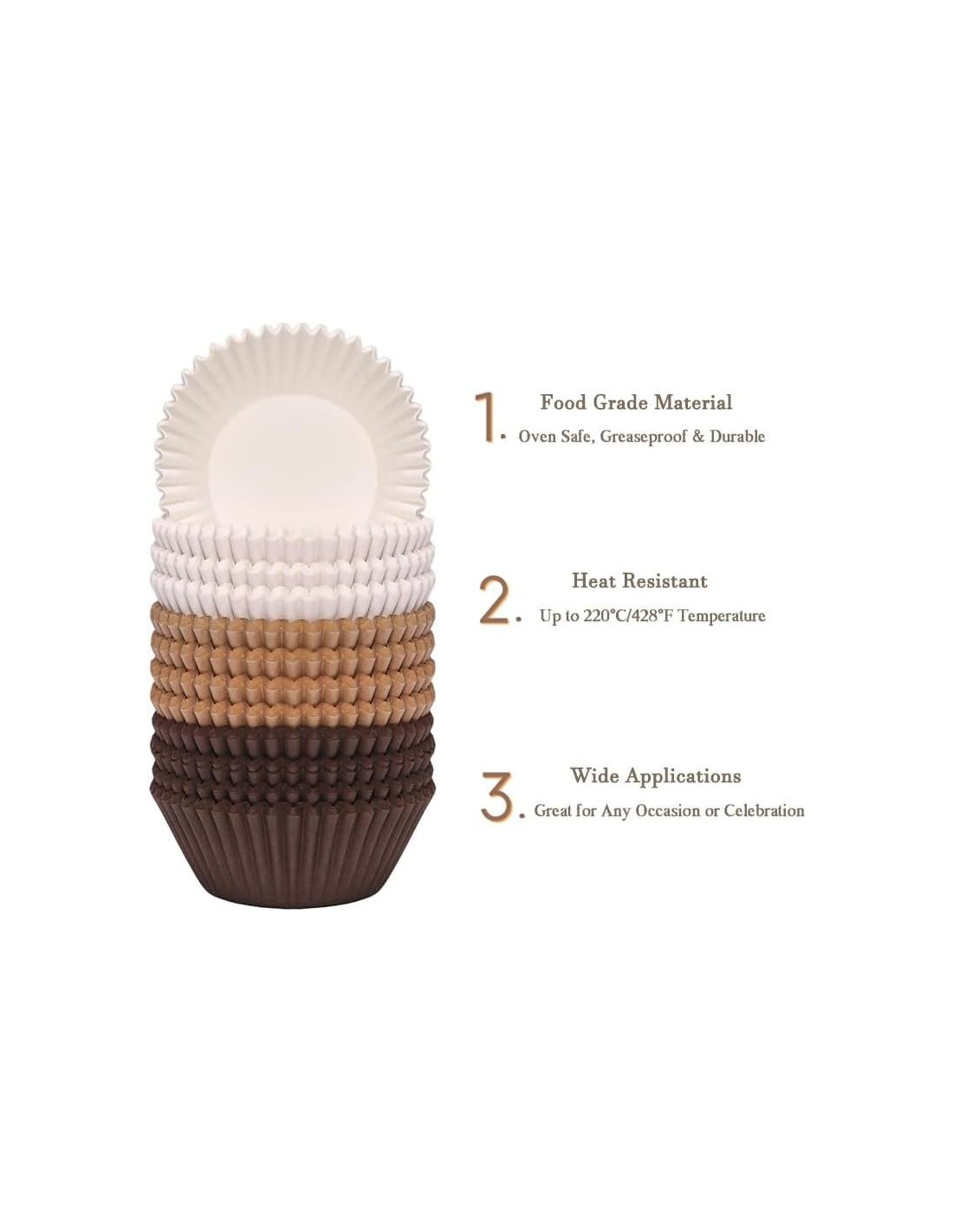 - Lo que obtienes - El paquete incluye 300 piezas de forros de cupcake en tres colores (natural, blanco, marrón), la cantidad suficiente puede satisfacer tus diversas necesidades para fiestas.