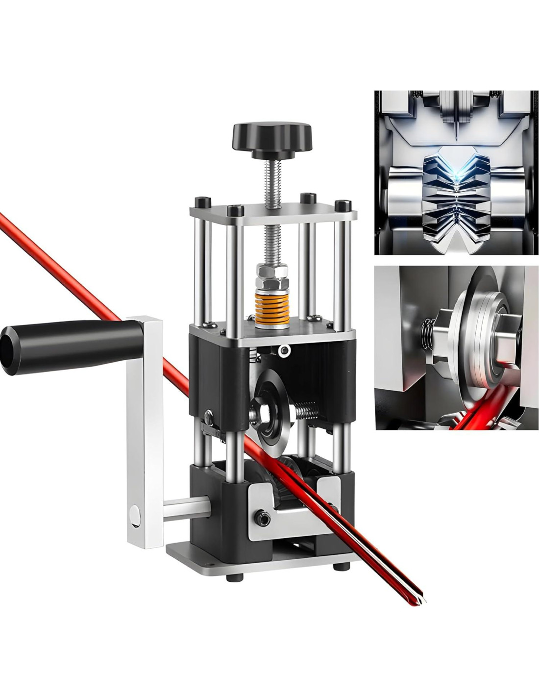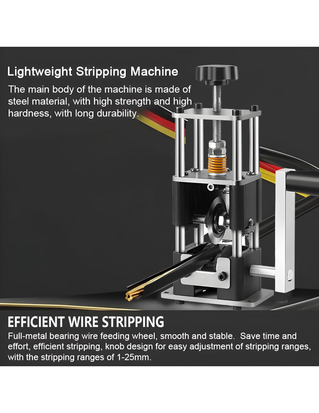 - Artesanía de Precisión: Nuestra Máquina Desforradora de Cables está meticulosamente fabricada con aluminio reforzado, mientras que las cuchillas están hechas de acero aleado duradero, asegurando una resistencia al desgaste duradera