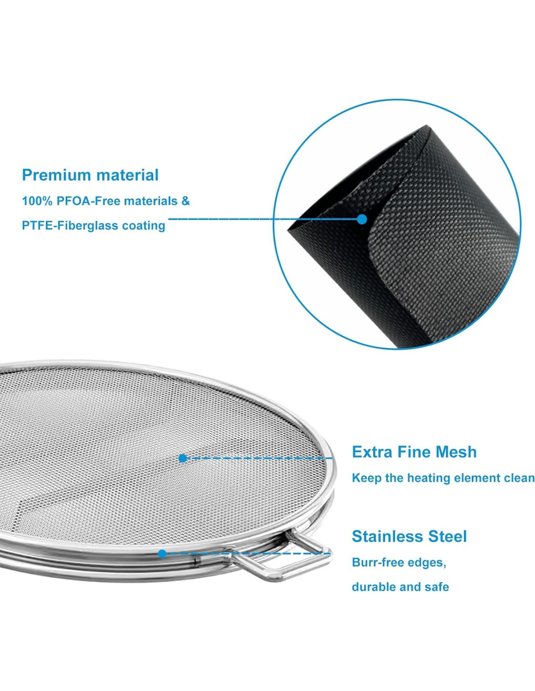 Accesorios de Pantalla de Salpicaduras de Freidora de Aire de Grado Profesional. Esta pantalla de salpicaduras de aceite para freidora de aire está hecha de acero inoxidable de grado alimenticio de alta calidad, duradera, antiadherente, resistente a altas temperaturas y fácil de limpiar. Este tejido de sarga fino permite que la pantalla resista abolladuras, lo que ahorra tiempo de limpieza y protege la canasta de la freidora de aire de un desgaste prematuro. Nunca cocines en una rejilla de horno sucia y desagradable nuevamente. Los accesorios de pantalla de salpicaduras de grado profesional para freidora de aire son el regalo perfecto para familiares, amigos y compañeros de trabajo. Gracias por tu confianza y apoyo continuo. Es un placer crear productos que añaden valor a tu vida con calidad, asequibilidad y cuidado.