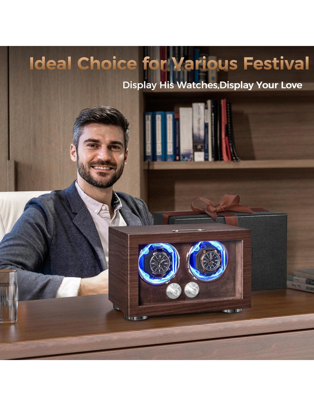 - [Adaptador Tipo-C] Nuestra caja de winder para relojes viene con un adaptador Tipo-C, que es más versátil y conveniente que los adaptadores de CA tradicionales. La caja de reloj giratoria es adecuada para regalar a tus seres queridos y amigos en cumpleaños, aniversarios, Navidad, Acción de Gracias o cualquier otra ocasión especial