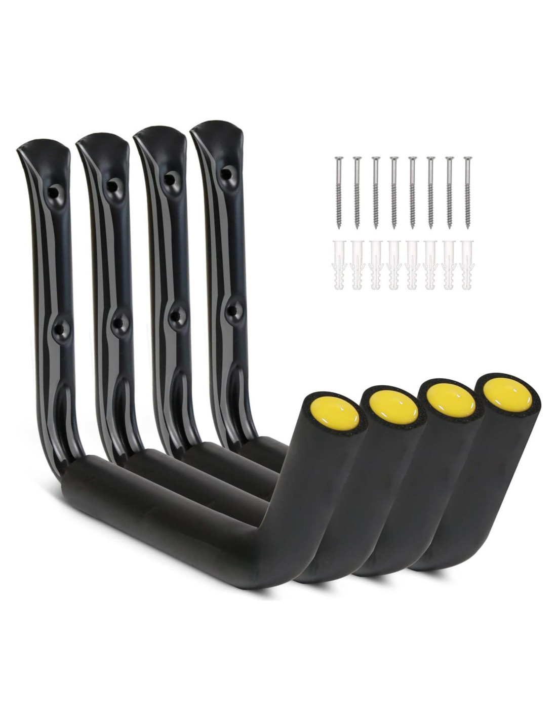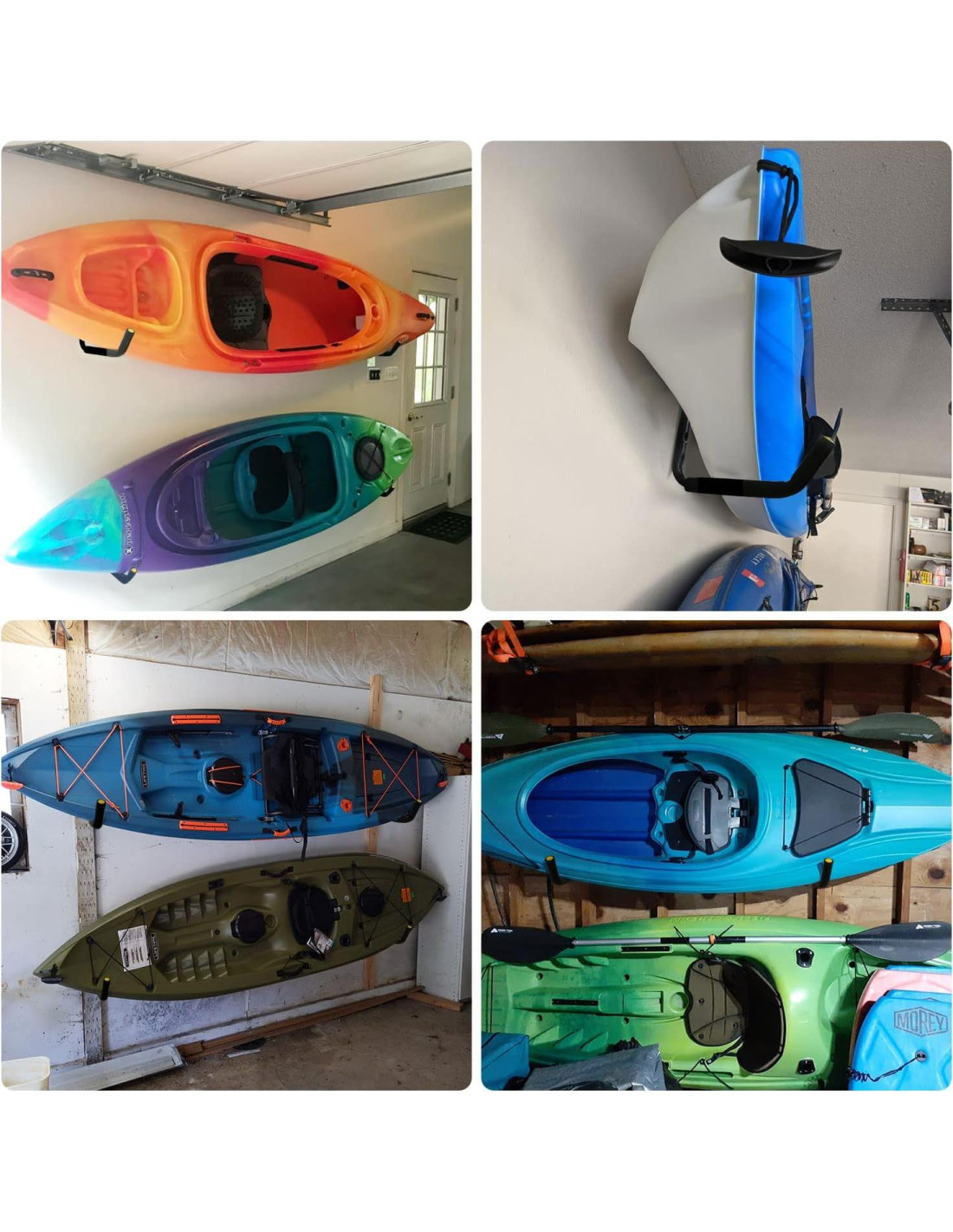 - Utilidad, Bien Organizado: Ideal para la organización del almacenamiento en el garaje como soporte de kayak, soporte para tabla de paddle en la pared, soporte para snowboard y montajes de pared para tabla de surf, gancho de alta resistencia para canoa, sillas plegables, escaleras, mangueras de jardín, herramientas, bicicletas, equipo deportivo y otros artículos voluminosos. Organiza y protege contra daños o desorden