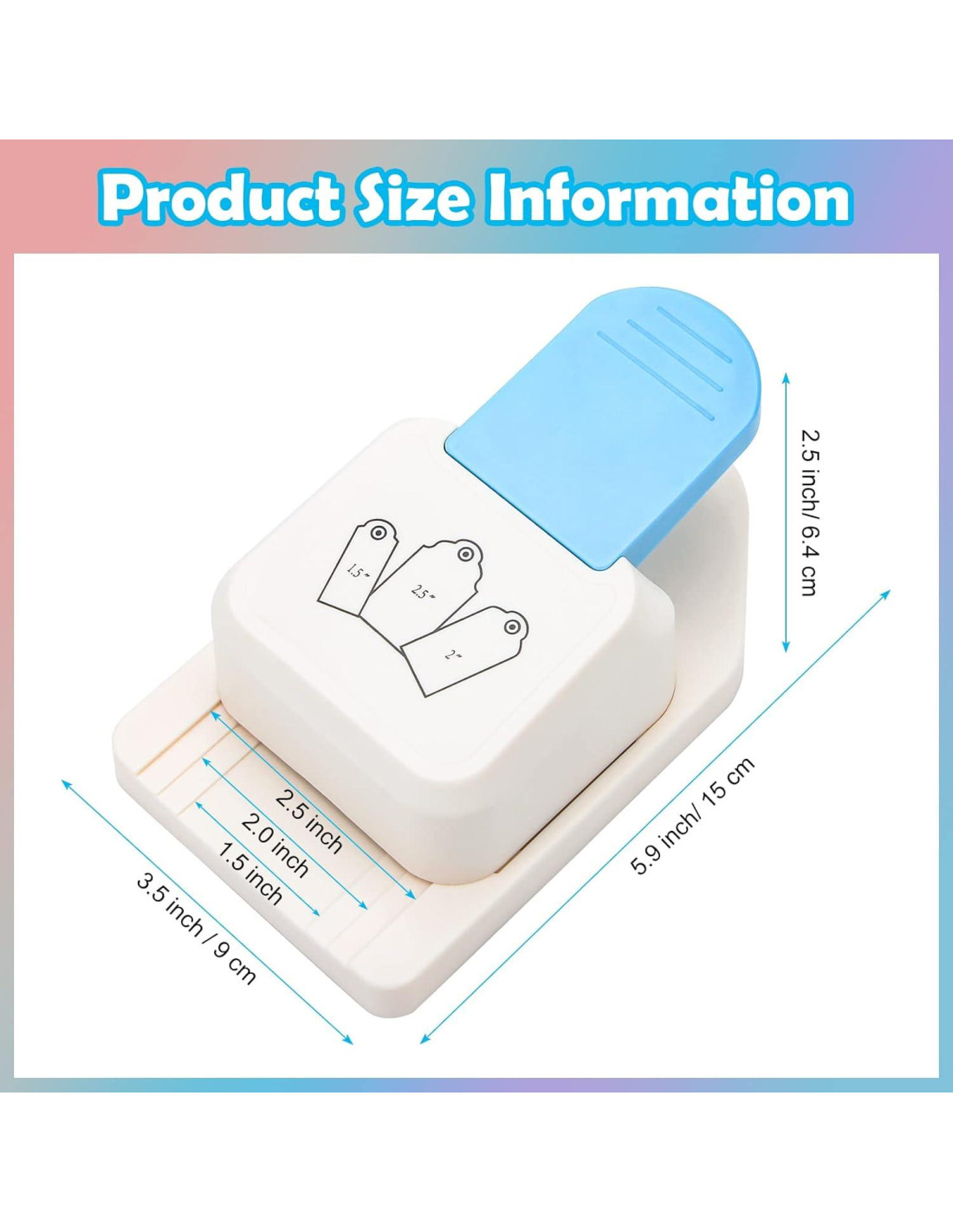 - [Selección de Tamaños Múltiples] : El troquelador de etiquetas 3 en 1 puede hacer tres tamaños diferentes de tarjetas de regalo de 2.5 pulgadas (6.35 cm), 2 pulgadas (5.08 cm) y 1.5 pulgadas (3.81 cm). La tarjeta de regalo de encaje también contiene un agujero redondo, lo que es conveniente para que la conectes en serie con una cuerda de cáñamo.