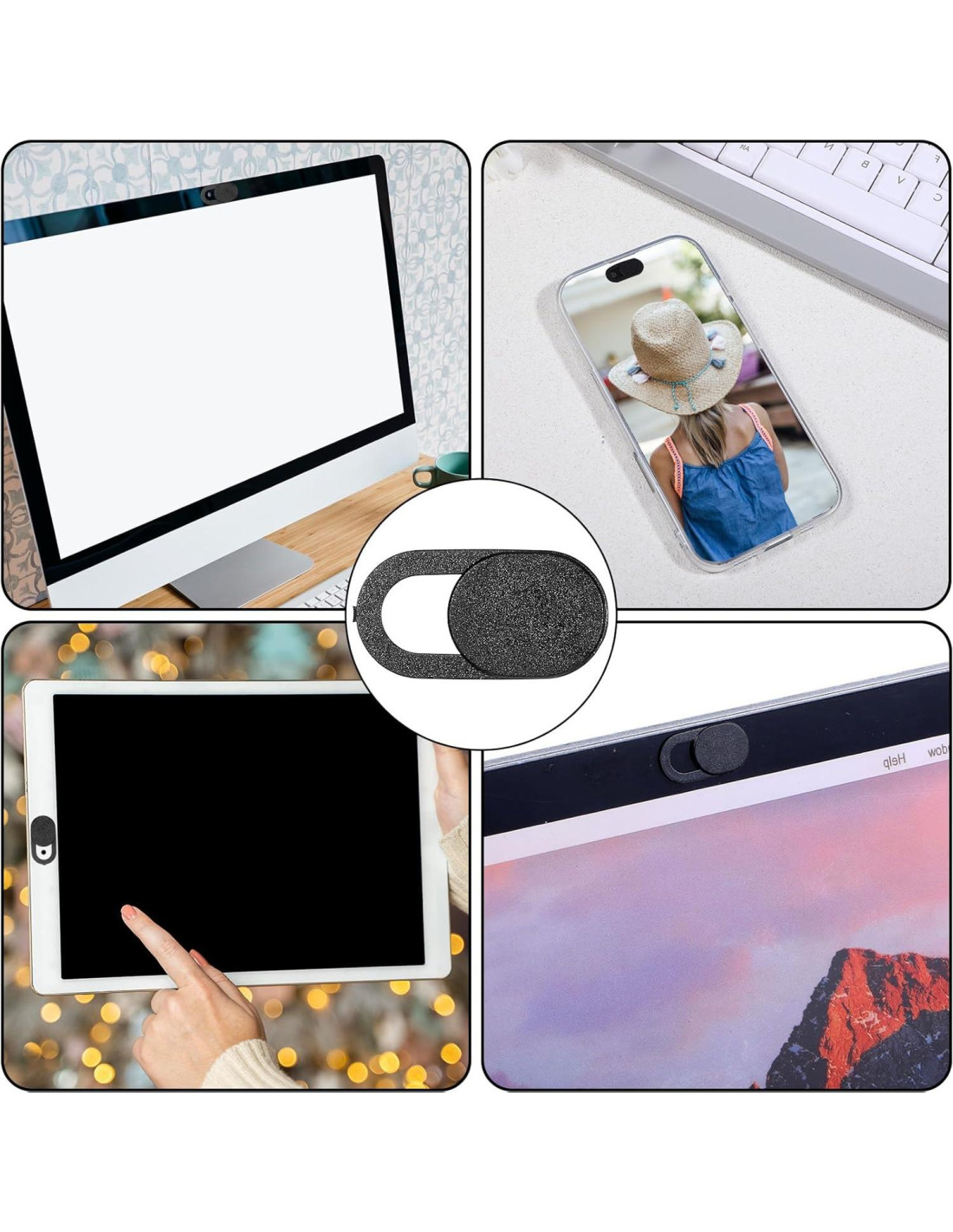 - [Compatible con la Mayoría de Dispositivos] El bloqueador de cámara para laptop se adapta perfectamente a la mayoría de los modelos de computadoras, laptops, tabletas y celulares, como tabletas, PC, todo en uno, celulares y más cámaras frontales de smartphones. Por favor nota: La cubierta de cámara necesita ser utilizada en una superficie plana y no es adecuada para dispositivos de pantalla completa. Si la pestaña del deslizador se cae ocasionalmente, puedes presionarla de nuevo fácilmente.