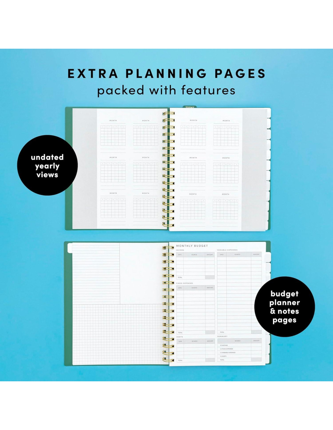 - PLANIFICADOR SIN FECHA DE 12 MESES: ¡Comienza a planificar cuando estés listo! Este planificador semanal y mensual tiene cubiertas de plástico duraderas con distribuciones anuales, mensuales y semanales sin fecha, además de páginas para presupuestos y metas. Un planificador semanal o diario para ayudar a aumentar la productividad.