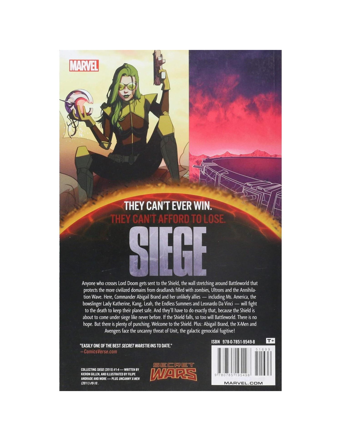 EL ESCUDO es lo único que protege las áreas más civilizadas de Mundo de Batalla de las HORDAS ZOMBIE, MÁQUINAS DE MUERTE Y OLAS DE ANNIHILATION. Cualquiera que moleste a Doom es enviado al Escudo. Cualquiera que sea enviado al Escudo se enfrenta a ABIGAIL BRAND. Miss América, Lady Katherine, Kang el Conquistador, Leah Shieldmen, la Compañía Endless Summers, Leonardo da Vinci y un elenco de miles lucharán hasta la muerte para mantener seguro el Mundo de Batalla. COLECCIONANDO: ASALTO 1-4, X-MEN INUSUALES (2011) 9-10