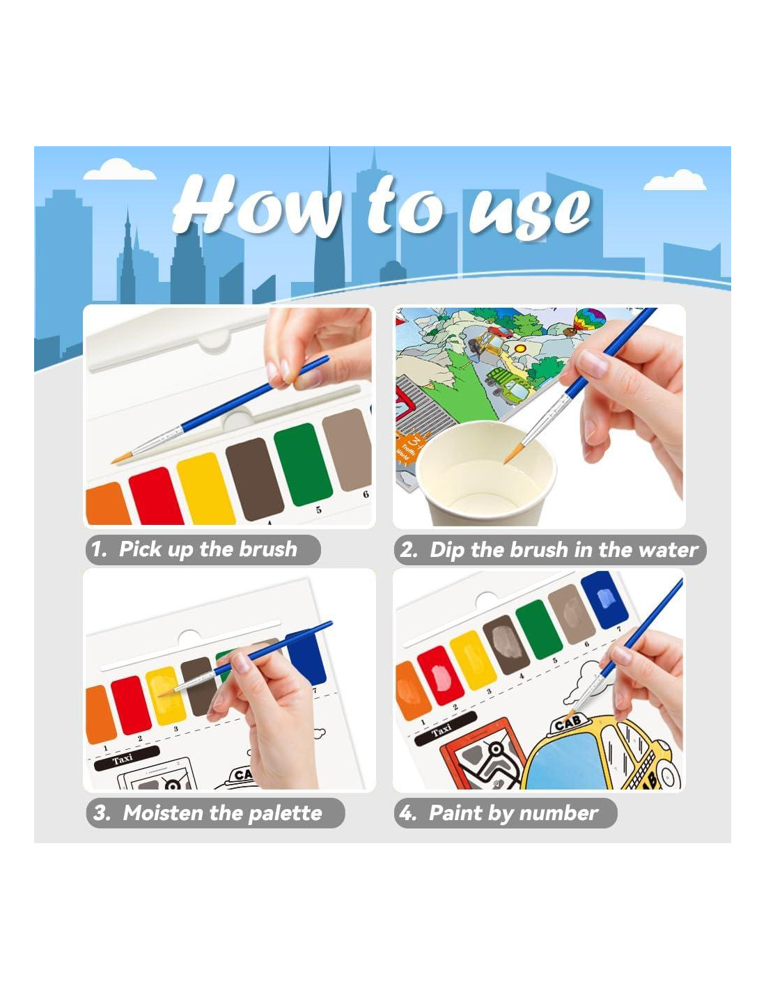 - [Por qué elegirlo] Porque los libros de acuarela para niños pequeños son fáciles de usar, vienen con pinturas, pinceles, solo necesitas mojar ligeramente el pincel en agua y luego sumergirlo en la pintura para pintar directamente, ¡reduciendo el desorden y simplificando la limpieza!