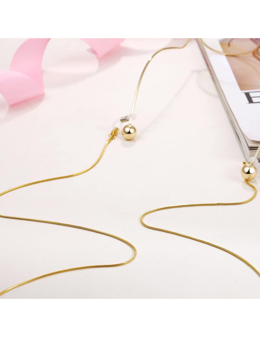 - Material Duradero La cadena para gafas está hecha de acero inoxidable y el retentor de gafas está hecho de goma, que es duradero y a la moda. Las cadenas de gafas doradas combinan perfectamente con cualquier estilo de gafas. Conveniente para llevar contigo en salidas y viajes.