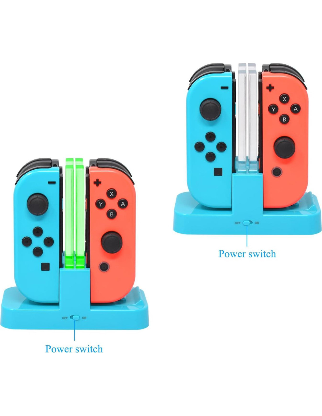 - MULTIFUNCIONAL - Puede cargar 4 controladores para joycon o 1 Pro Controller y 2 controladores para joycon al mismo tiempo. También puedes cargar para OLED Joy Con (No incluye Switch, controlador para Joycons y Pro Controller)
