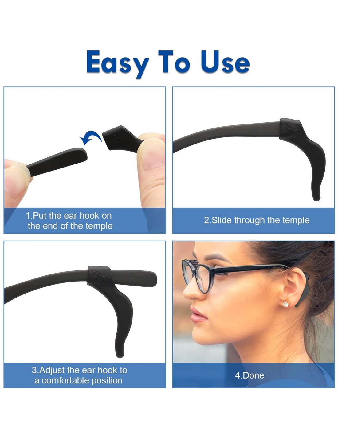 - Fácil de Limpiar - Simplemente usa agua y jabón para lavar estos sujetadores para gafas detrás de la oreja y luego déjalos secar de forma natural, o límpialos con una toalla de papel húmeda.