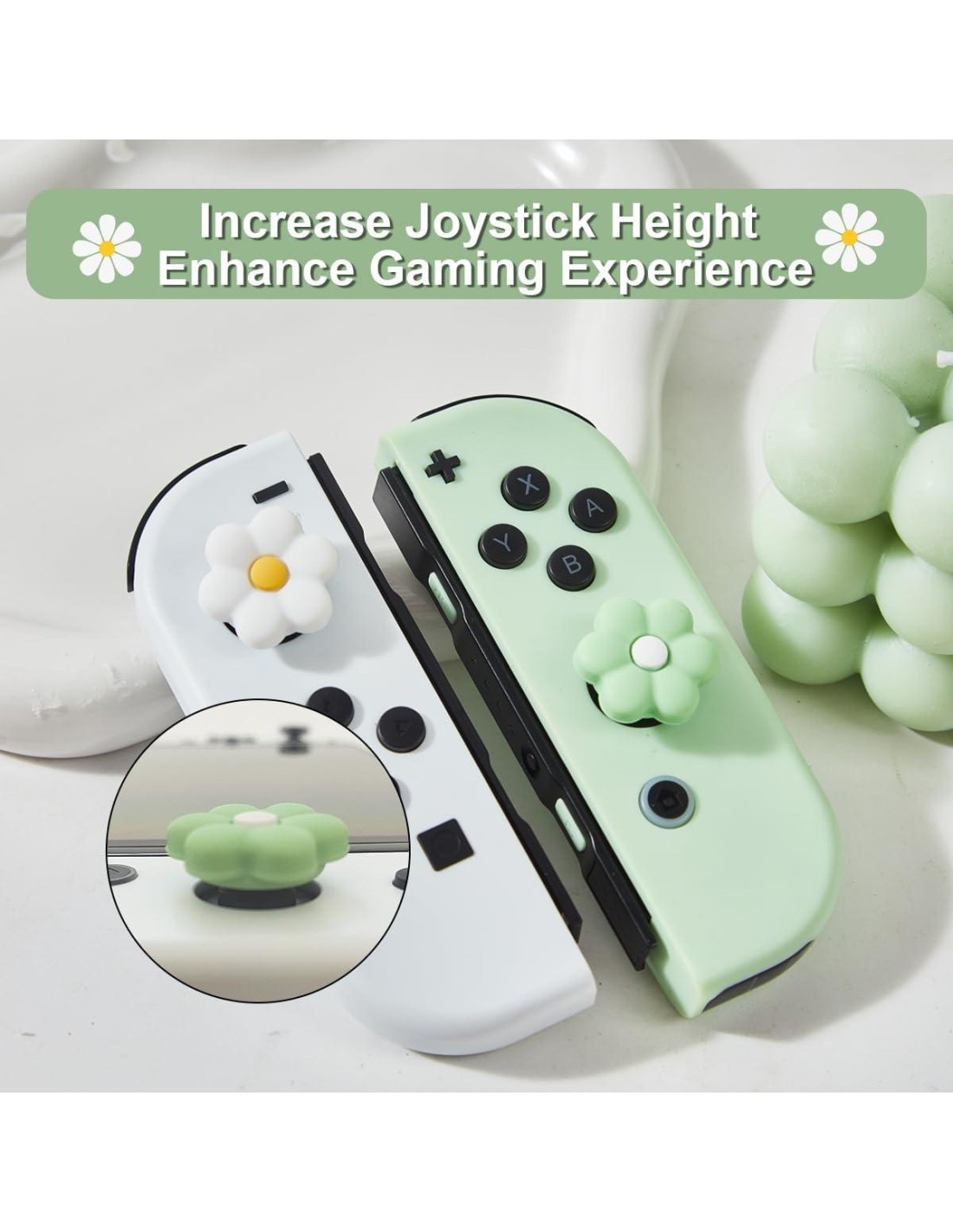 Tapas de agarre para pulgar compatibles con Nintendo Switch, tapas de joystick Cozy Daisy para Nintendo Switch Lite/OLED, cubiertas de agarre de silicona floral Joycon accesorios para Switch-4PCS verde salvia/blanco Cozy Gaming