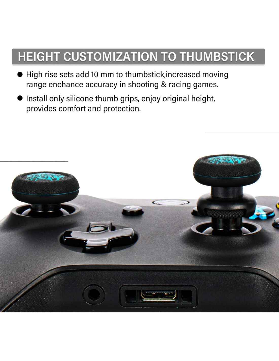 - Opciones de Altura Diferentes - Instalar juegos de extensores y agarres añade 10 mm de altura al stick, mejora la precisión en juegos de disparos y carreras. Instalar solo agarres de silicona, disfrutar de la altura original y comodidad y protección ideales;
