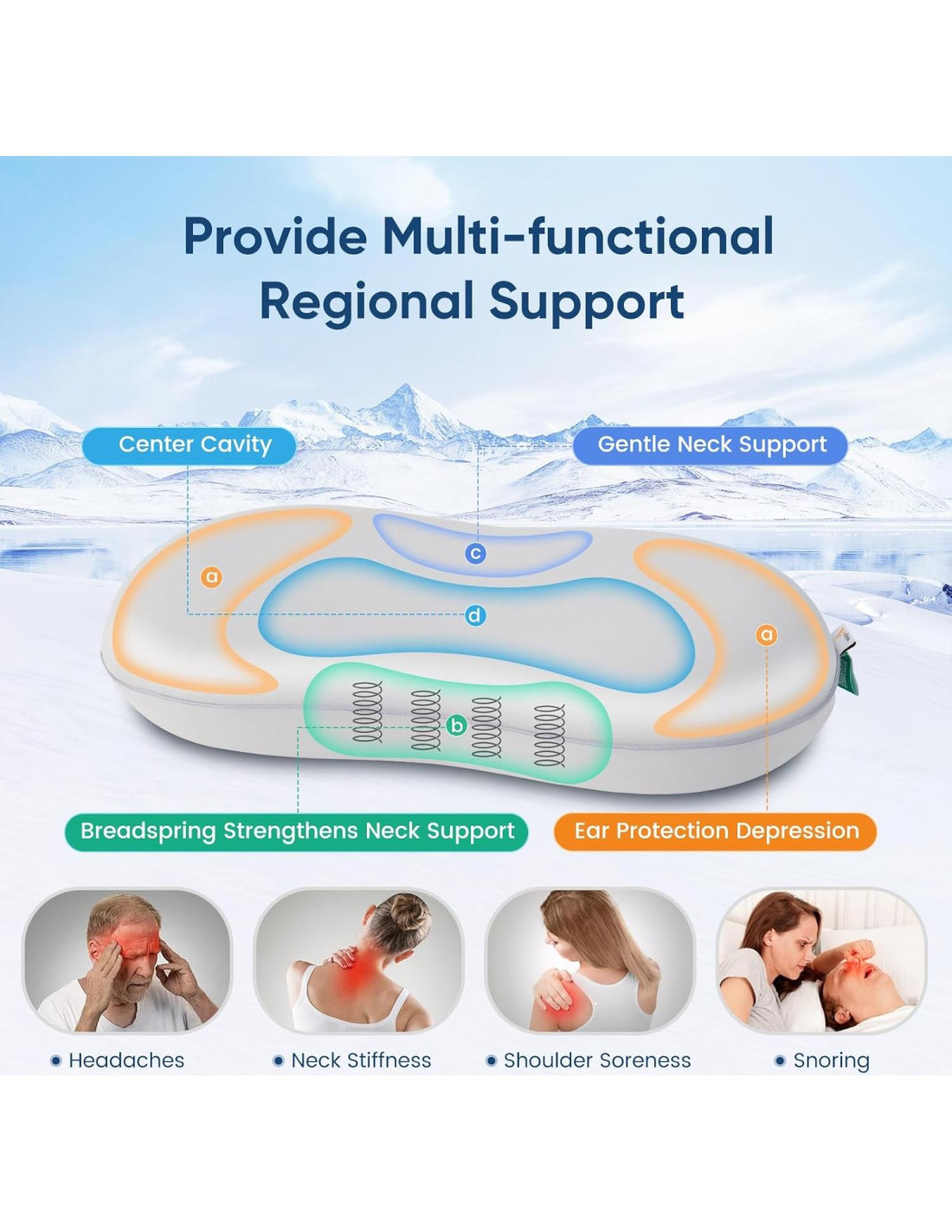 - [Diseño Ergonómico de Doble Altura] Nuestra almohada contorneada ofrece dos alturas (3.9" (9,91 cm) y 3.5" (8,89 cm)) para adaptarse a sus preferencias de sueño y promover una postura espinal correcta. El diseño cóncavo amigable con las orejas en ambos lados minimiza la presión para los durmientes de lado, mientras que el área de soporte para la cabeza suavemente curvada mejora la comodidad del cuello. Diseñada para adaptarse a estilos de sueño de espalda, de lado o boca abajo, esta almohada para durmientes de lado le ayuda a mantenerse cómodo toda la noche.
