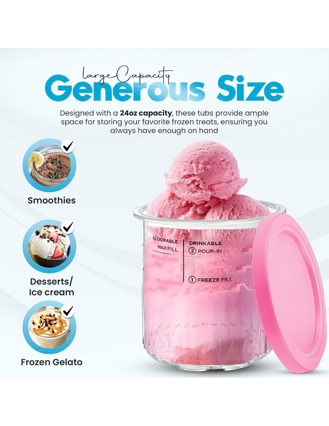 - [Compatibilidad] Diseñado para encajar en las series Ninja CREAMi NC501 y NC500. Estos contenedores de pint creami deluxe de 24oz (710 ml) se ajustan perfectamente a tu máquina de helados Ninja Creami 11-en-1.
