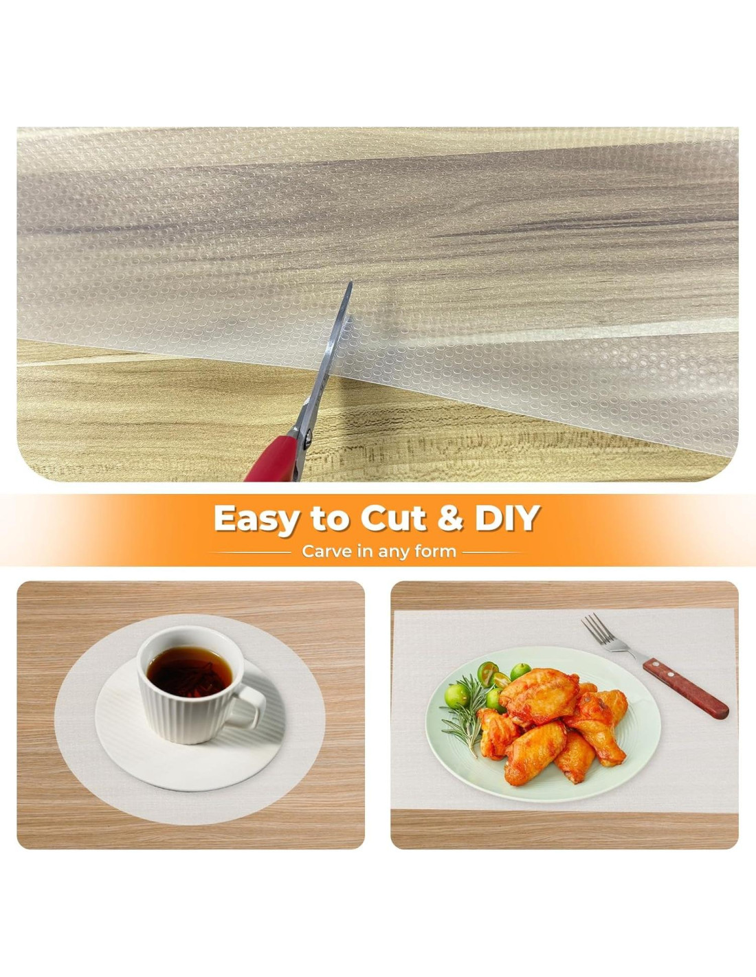 - [Diseño antideslizante] Esta superficie de forro de estante transparente utiliza un diseño especial de puntos convexos, que puede prevenir eficazmente que el vidrio, la vajilla u otros artículos frágiles se deslicen de la mesa.
