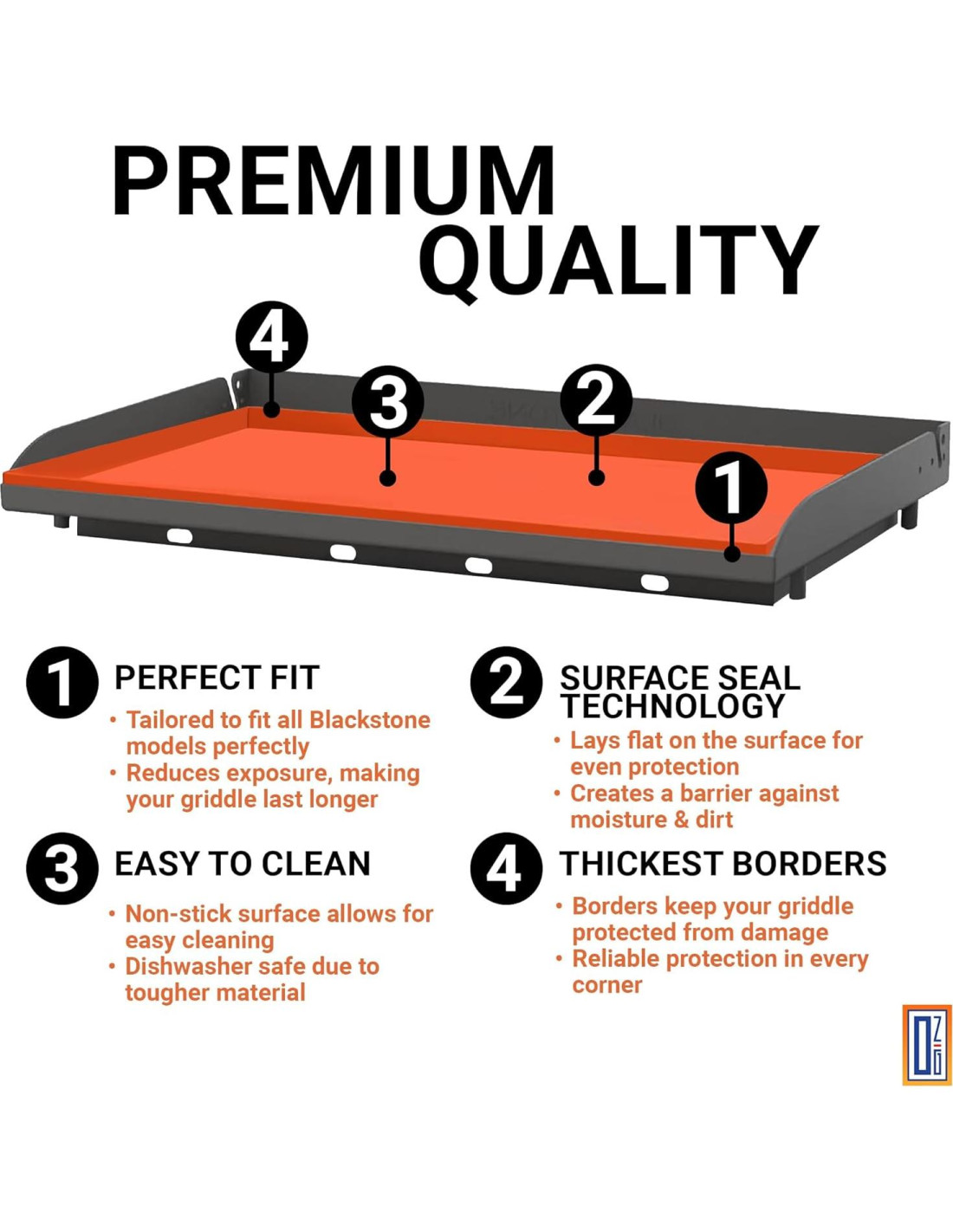 - Cubierta de compañero de plancha A diferencia de otras alfombrillas de plancha de Blackstone que dejan espacios en las esquinas. Nuestra alfombrilla de silicona para plancha asegura una protección de cobertura completa, protegiendo la alfombrilla de plancha del polvo, desechos y hojas.