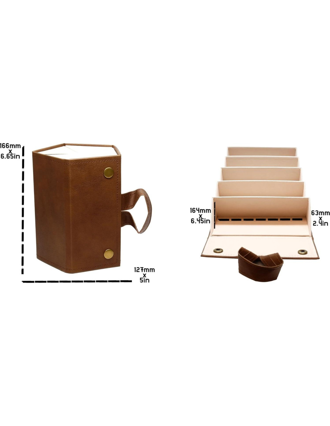 - Diseño Elegante y Retro: El Organizador de Gafas de Sol Múltiple Calabria de 5 Ranuras ofrece un diseño de moda e inspirado en lo vintage, completo con 2 botones seguros para un cierre fácil. Su estructura plegable lo hace increíblemente versátil para viajar, convirtiéndose en un estuche de transporte elegante que se adapta perfectamente a tus necesidades en movimiento. El mango portátil adjunto añade conveniencia, permitiéndote llevarlo a donde vayas mientras mantienes un aspecto elegante y retro.