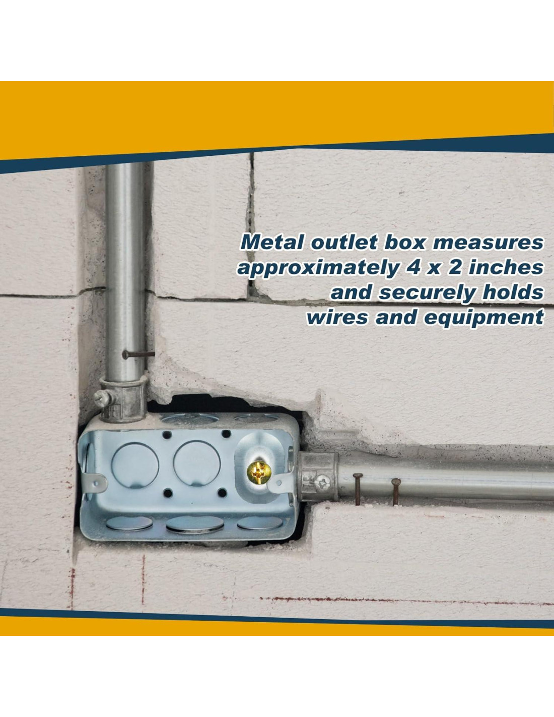 - Tamaño Estándar: la caja de salida de metal es aproximadamente 10,16 x 5,08 cm, ofrece suficiente espacio para sostener de manera segura cables y dispositivos eléctricos, facilita la instalación y proporciona un aspecto ordenado, adecuado para la mayoría de las cajas eléctricas de 10,16 cm, mide la caja de conexiones antes de ordenar