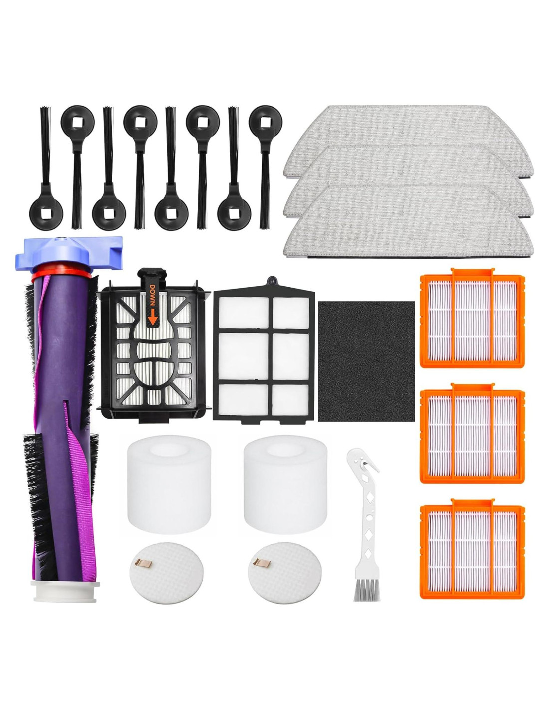 - Componentes incluidos: 1 Cepillo Autolimpiante, 3 Paños de Mopa, 8 Cepillos Laterales, 3 Filtros HEPA, 2 Filtro de Fieltro, 2 Filtro de Espuma, 1 Filtro Pre-motor, 1 Filtro Post-motor, 1 Filtro Primario, 1 Cepillo de Limpieza.