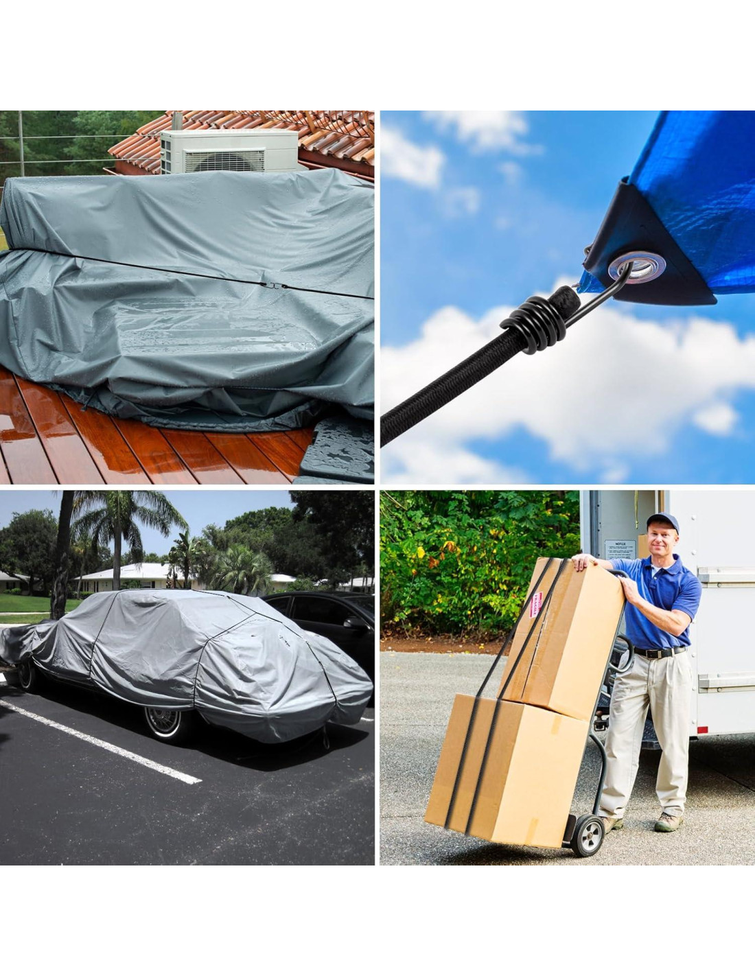 - Amplia gama de aplicaciones: ¿Buscas algo que te ayude a asegurar artículos? Estas cuerdas elásticas de alta resistencia proporcionan alta elasticidad y fuerza para mantener las cosas firmemente en su lugar, que se pueden usar para cualquier hogar y exteriores como: coches, camiones, motocicletas, barcos, embarcaciones, kayaks, ATV, SUV, RV, o sujetar cualquier artículo suelto fácilmente.
