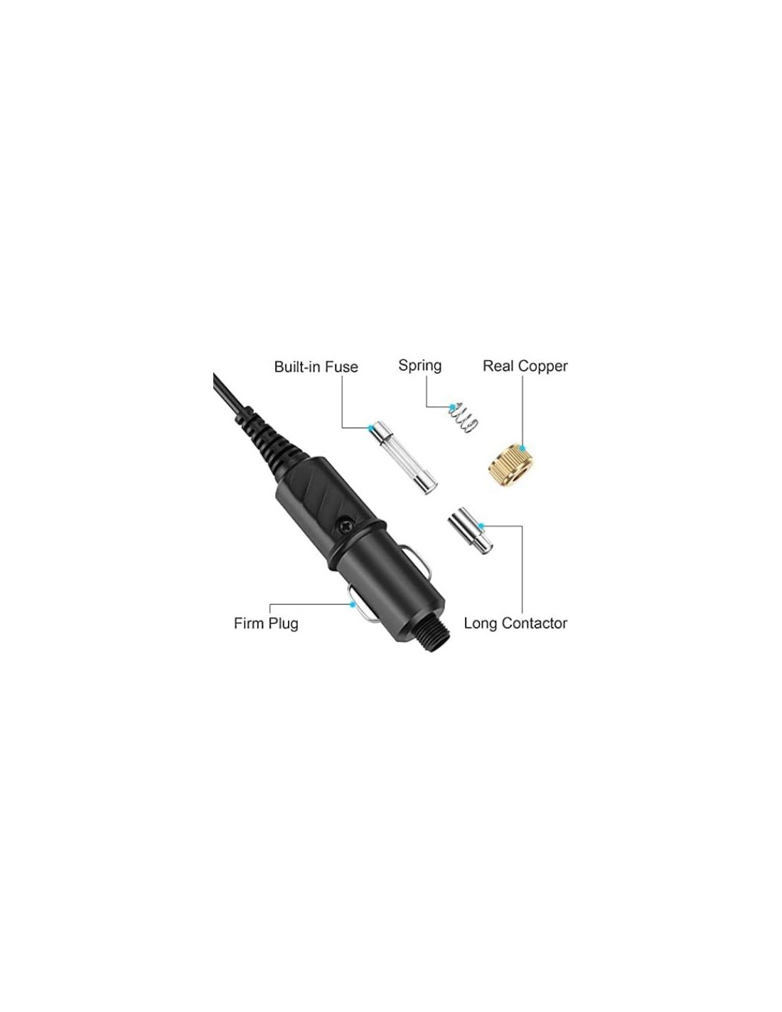 - [Amplia compatibilidad] El cable de encendedor de cigarrillos se puede aplicar a la mayoría de los tipos de enchufes de encendedor de cigarrillos, ampliamente utilizado en energía móvil al aire libre, autocaravanas, barcos, remolques de viaje, furgonetas, ideal cuando deseas usar tus chaquetas calefaccionadas mientras viajas, pescas y acampas.