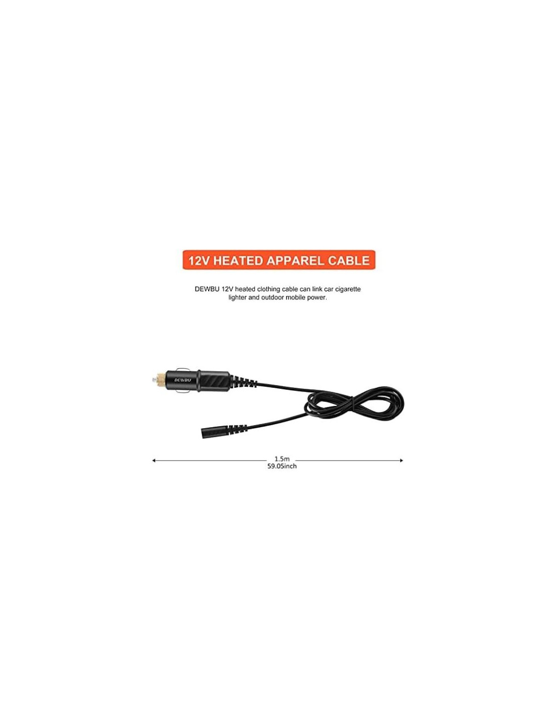 - [Tipo de producto] Longitud del cable: 1.5m, salida hembra DC 4.0mm: 12V/2A, entrada de enchufe macho de cigarrillo: 12V, este cable adaptador de encendedor de cigarrillos solo funciona con ropa calefaccionada DEWBU de 12V.