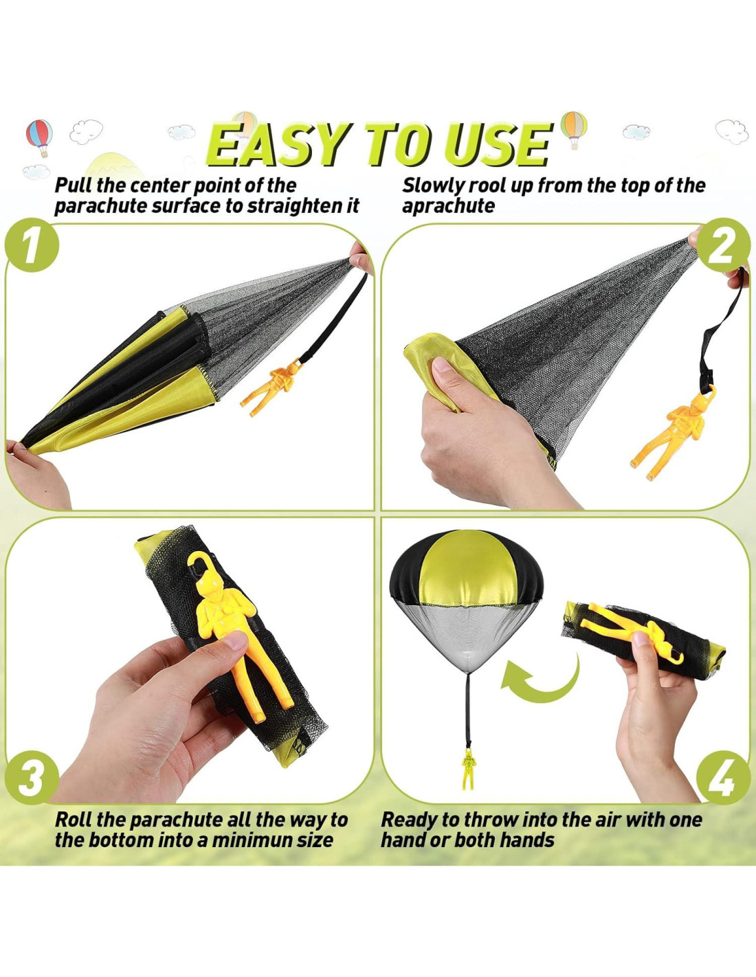 - Fácil de Jugar: el juguete paracaídas sin batería no requiere baterías ni ensamblaje, solo tienes que lanzar a mano los juguetes de hombres paracaidistas al aire, observar cómo imita un aterrizaje real, ver quién vuela más alto y esperar a que aterrice