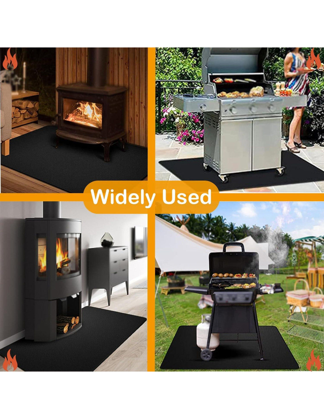 - [Uso amplio]: El grosor de nuestro mat de parrilla es de 0.04 pulgadas (1.016 mm), plegable para almacenamiento, fácil de transportar y reutilizable, adecuado para protección contra incendios en camping al aire libre, protección contra incendios en familia en interiores, diversas parrillas, chimeneas, fogatas, etc.