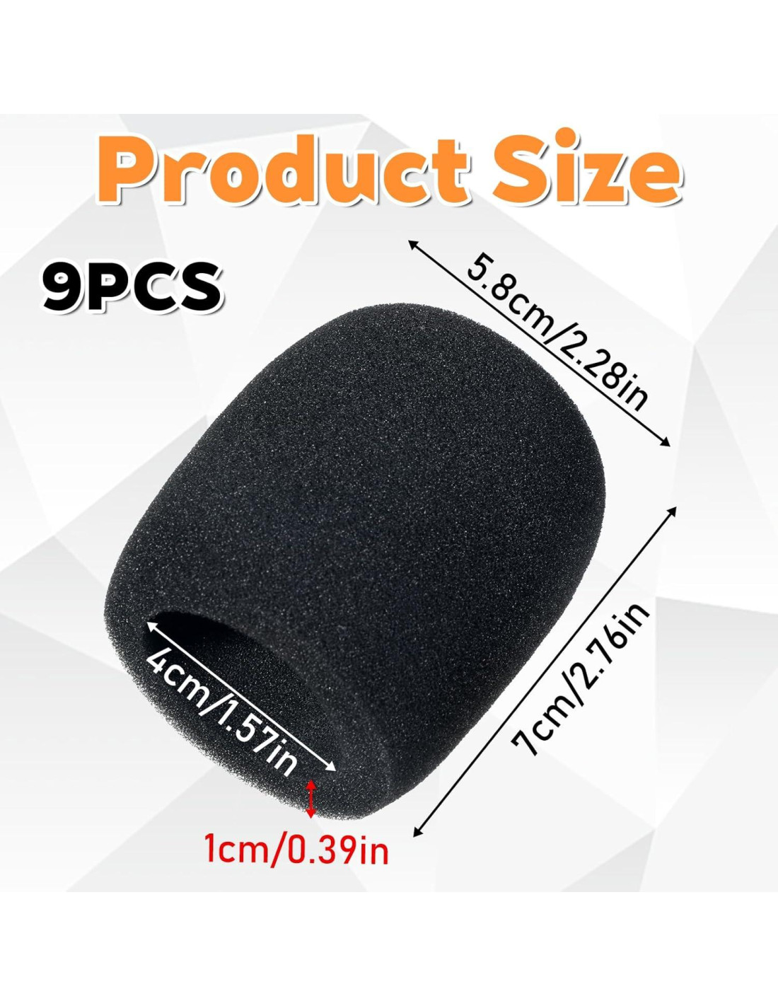 - Tamaño Adecuado: El tamaño de las fundas de espuma para micrófono es de aproximadamente 7 cm (2.76 pulgadas) x 5.8 cm (2.28 pulgadas), el diámetro es de aproximadamente 4 cm (1.57 pulgadas), el grosor es de aproximadamente 1 cm (0.39 pulgadas). Adecuado para la mayoría de los micrófonos de mano.
