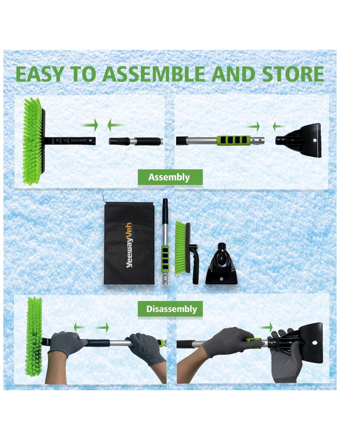 - Diseño 3 EN 1 y Desmontable: Nuestro raspador de nieve para coche incluye 1 x cepillo de nieve, 1 x raspador de hielo, longitud ajustable según sus necesidades. Raspador de parabrisas retráctil para hielo y nieve que puede eliminar fácilmente hielo, escarcha y nieve del parabrisas y ventanas del coche.