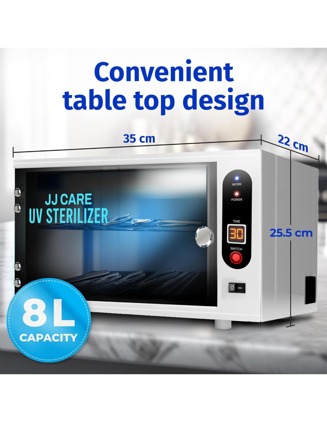 - 99% EFICIENCIA DE ELIMINACIÓN- Un tercero examinó el rendimiento de nuestros esterilizadores UV contra patógenos comunes como bacterias, gérmenes y otros microbios al romper el ADN y ARN de los microorganismos, deteniéndolos de multiplicarse y replicarse, y se ha demostrado que son 99% efectivos. ¡Desinfecta tus instrumentos profesionales en solo 5-10 minutos sin la inconveniencia de usar demasiados químicos, gracias a nuestro esterilizador de luz UV!