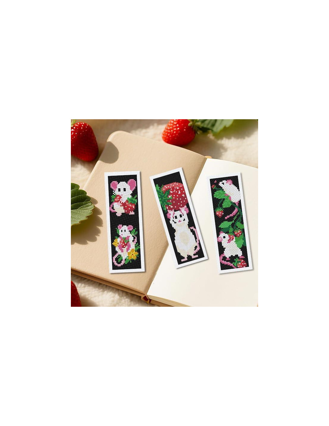 - KIT DE PUNTOS DE CRUZ DIY COMPLETO: Un kit de bordado DIY para todas tus necesidades. Incluye 6 piezas de tela de bordado (7.0 x 21.0 cm) con lindos ratones, fresas y hojas verdes, etc., así como cantidades suficientes de hilos de puntos de cruz de diferentes colores, 6 agujas, enhebrador, tijeras y un folleto de instrucciones. Con estos hermosos marcadores, puedes encontrar rápidamente los números de página.
