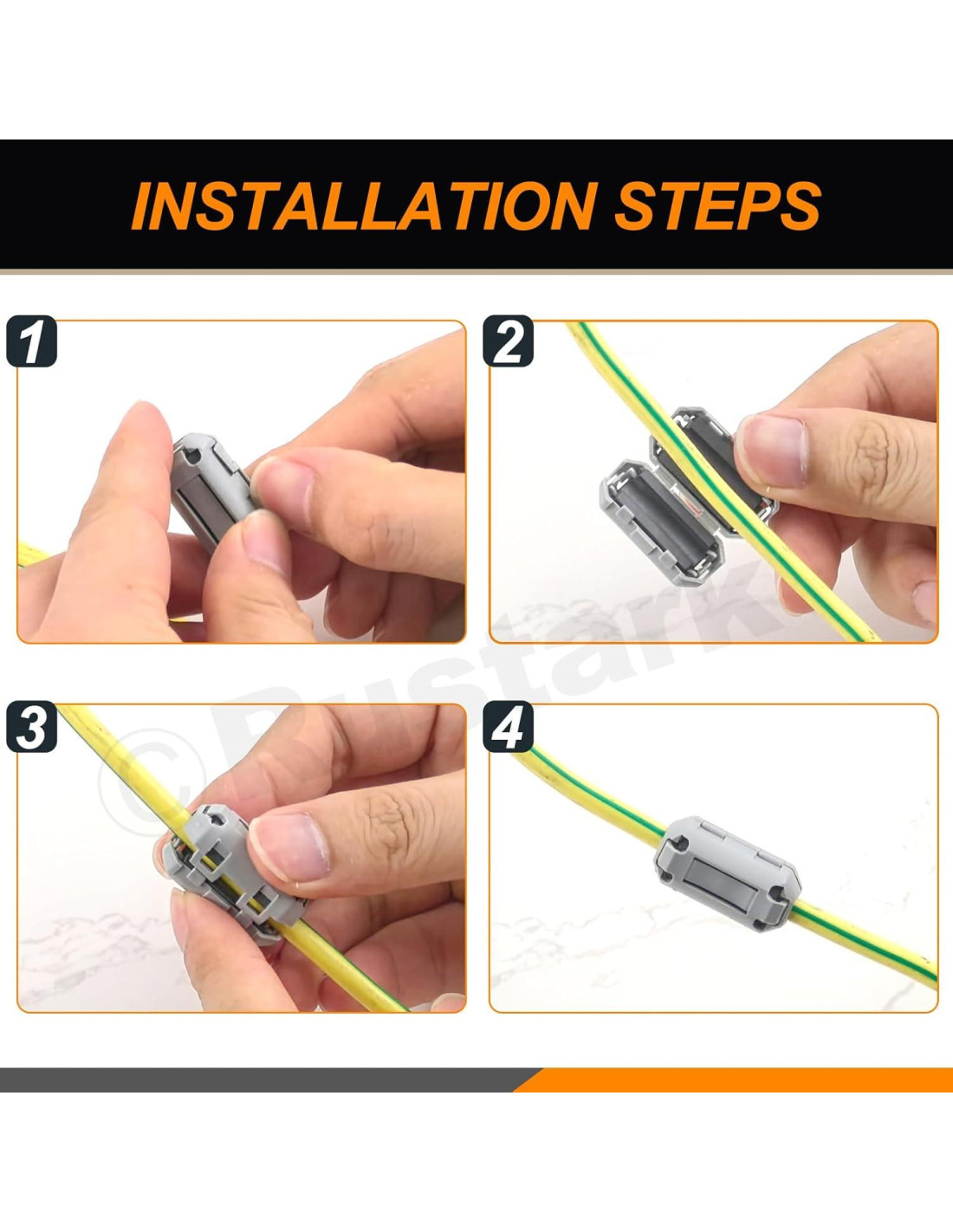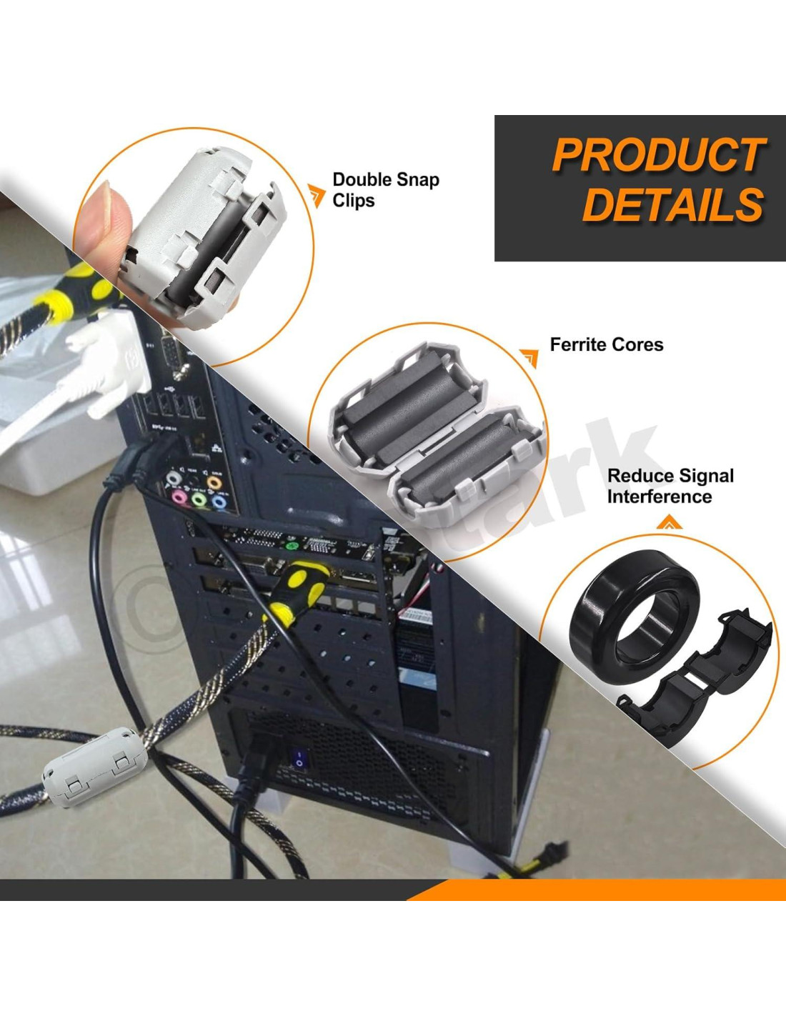- [Duradero y Confiable] --- Los clips de cable grises están hechos de una caja de plástico de alta calidad y núcleo de ferrita, que ayudan a reducir EMI y RFI en líneas de alimentación de CA para que funcionen durante mucho tiempo. Estos clips de cable negros cuentan con un clip de auto-adaptación interno, que puede adherirse firmemente a los cables para un tiempo de trabajo ultra largo. Puedes seleccionar el adecuado para usar.