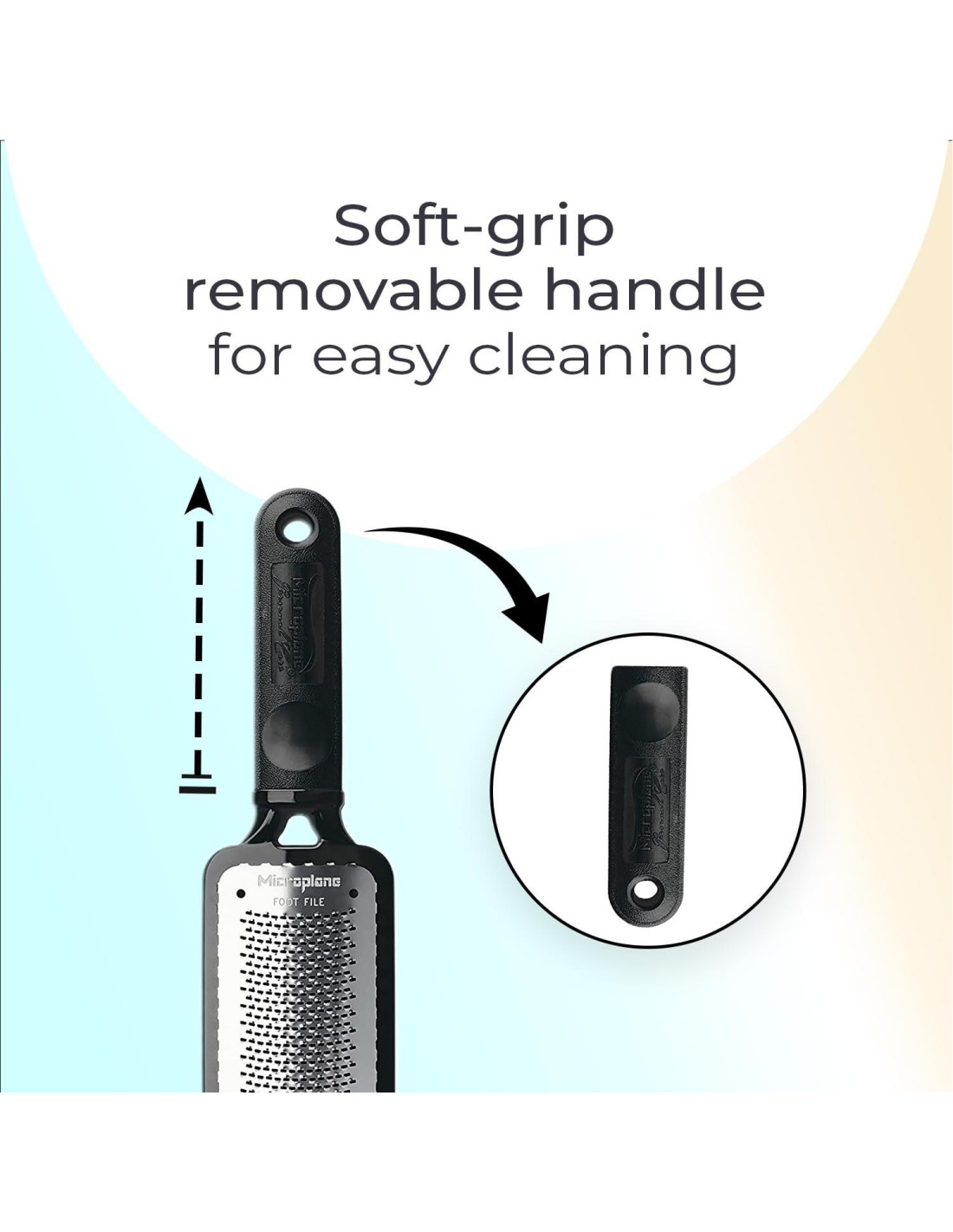 Microplane es el fabricante original en aplicar tecnología de foto-etching a ralladores, un proceso innovador diseñado para crear cuchillas de rallador ultra afiladas. Hecho en EE. UU., los pequeños dientes afilados como cuchillas actúan como cuchillos finamente afilados, cortando ingredientes con precisión en lugar de desgarrarlos. Creado como una herramienta de carpintería, el rallador original revolucionó el rayado en 1994 encontrando apoyo entusiasta de chefs profesionales y entusiastas culinarios. Los ralladores (excluyendo la serie Master) son aptos para lavavajillas. Sin embargo, para asegurar que las cuchillas se mantengan afiladas el mayor tiempo posible, recomendamos lavarlas a mano. Cada producto que ofrecemos viene equipado con una cubierta protectora para aumentar la longevidad y facilitar el almacenamiento. Nuestros ralladores de mano cuentan con pies de goma antideslizantes, ofreciendo una estabilidad superior. Gracias a la agudeza de nuestras cuchillas, un esfuerzo mínimo es todo lo que se necesita para que la comida se deslice suavemente y fácilmente fuera de la cuchilla sin necesidad de aplicar presión. Cuando los pies están ásperos y con callos, un raspado suave con el Microplane Colossal Foot File extra grande suaviza la piel al instante. Este robusto pero ligero limpiador de pies es cómodo de sostener. Hacemos que el cuidado de pies de calidad de salón y asequible en tu propio hogar sea fácil. Cuando necesites desinfectar tu Colossal Foot File para uso en salón, simplemente quita el mango y colócalo en un autoclave.