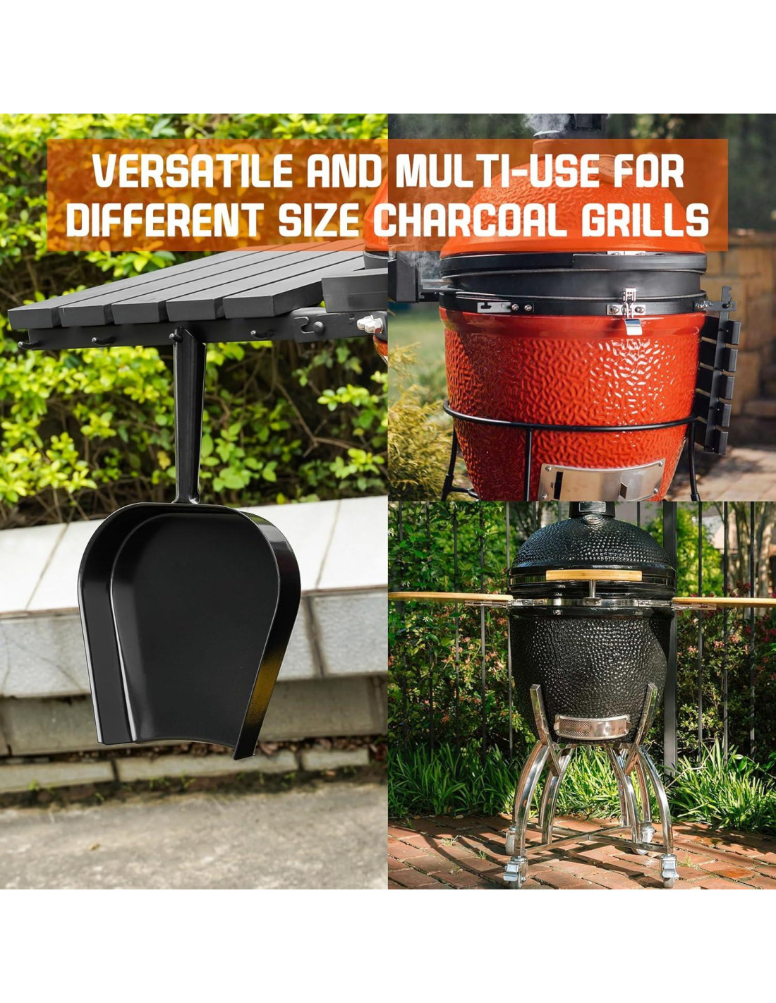- La bandeja de cenizas se engancha en la puerta de ventilación inferior de muchas parrillas kamado/cerámicas para una fácil limpieza.