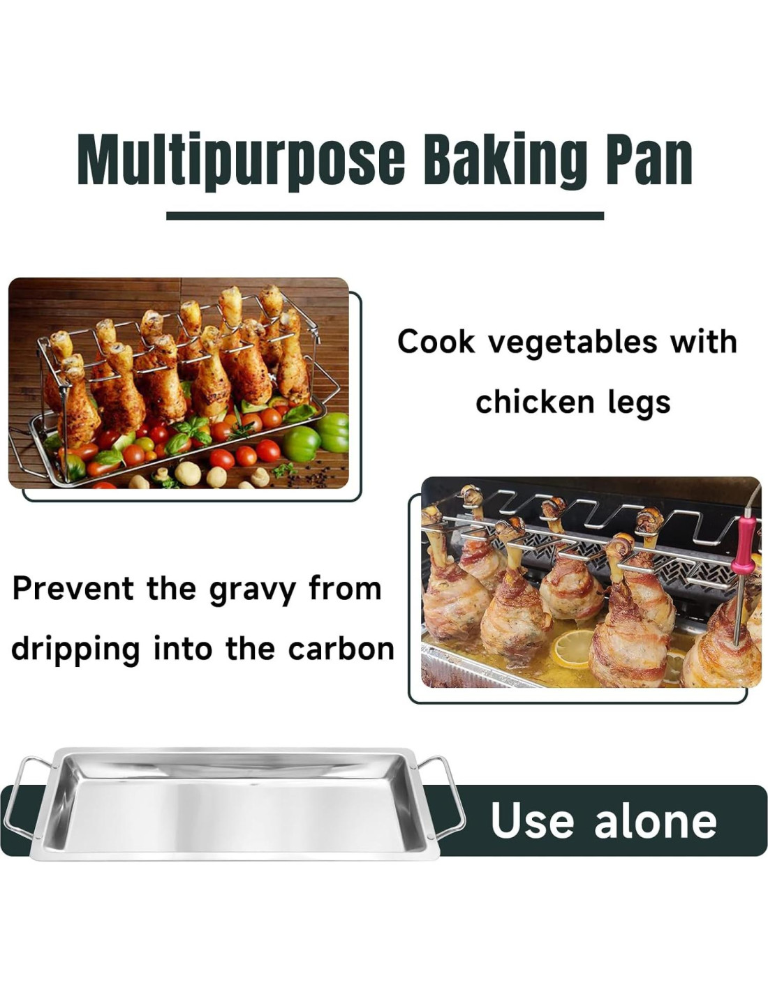 - USO AMPLIO - Permite que las alitas o piernas de pollo se cocinen de manera uniforme. Usado para cocción lenta, camping, barbacoa, parrilla al aire libre, picnics y otras actividades al aire libre o en interiores. Cocinando en la parrilla, ahumando o en el horno - Funciona en cualquier marca de parrilla incluyendo Weber Genesis, ahumadores Bradley o Big Green Color Eggs.