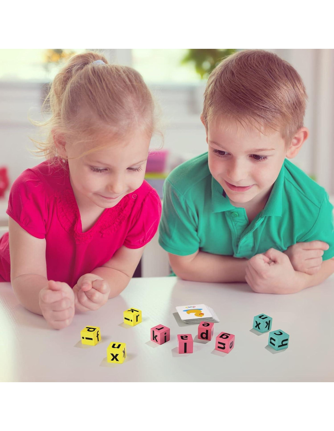 - Diseño Único: Los juguetes de juegos de rompecabezas de letras están diseñados con pequeños cubos en colores brillantes con diferentes alfabetos, también vienen con algunas tarjetas con animales vívidos y vocabulario correspondiente, para que los niños aprendan jugando.