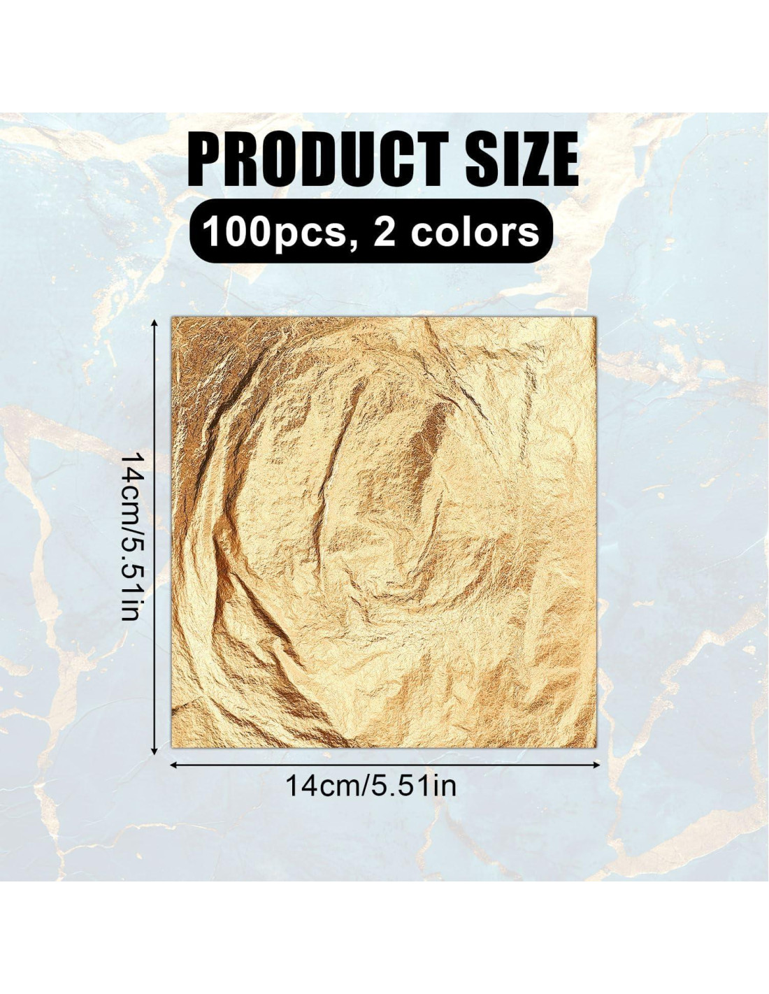 - Contenido del paquete: Recibirás 100 hojas de foil de oro imitación en dos colores, junto con un par de pinzas y un pincel. Diseñado para decorar y embellecer diversas artes o manualidades, haciéndolas más atractivas y encantadoras.