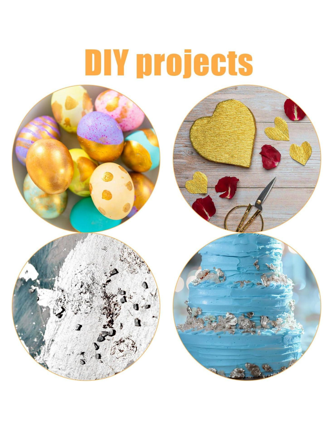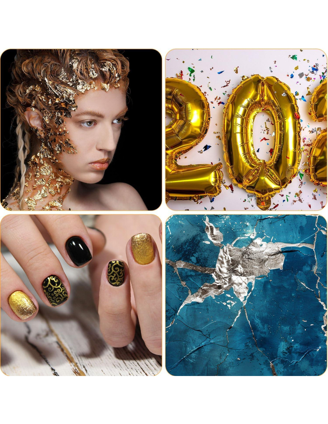 - Calidad Premium: Hecho de material de foil de oro imitación confiable, nuestro oro es muy delgado, exquisito, suave y fácil de romper, puedes desmenuzarlos fácilmente para espolvorear sobre el artículo que deseas decorar. También es resistente a la decoloración, asegurando decoraciones y exhibiciones duraderas.