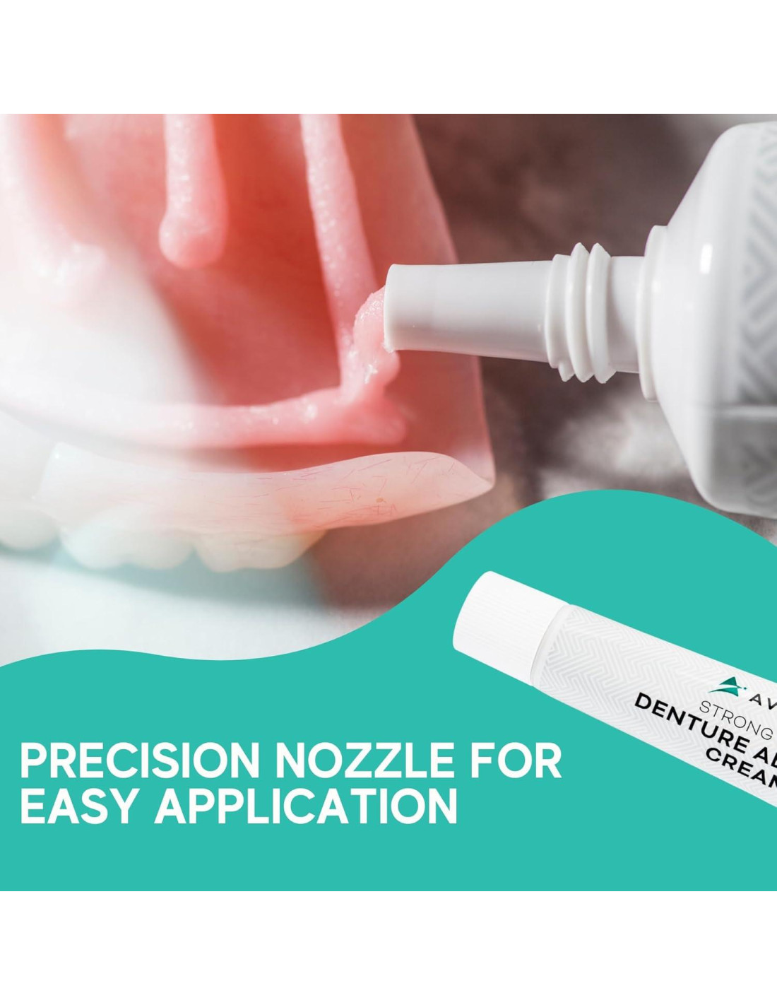 - APLICACIÓN MUY FÁCIL - Avistar sabe que has experimentado tubos de crema adhesiva que son voluminosos, hacen que la crema se derrame y son en general un dolor. Con la ergonomía en mente, esta crema adhesiva es elegante, tiene un tubo estrecho para máxima precisión al aplicar y simplemente se ve y se siente genial