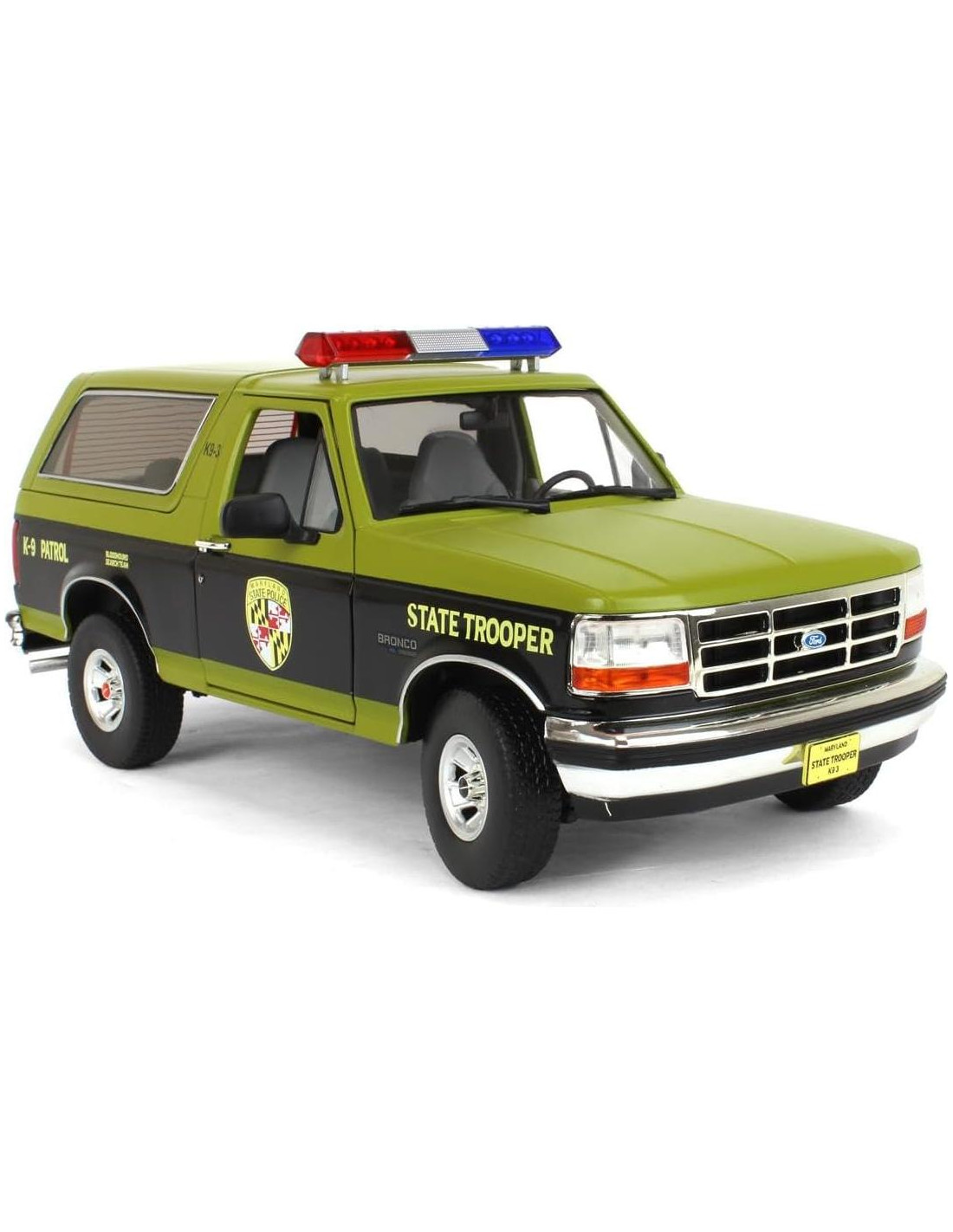 Características Coleccionable de Diecast de Precisión Puertas y Puerta Trasera Abren Panel Trasero Removible Detalle Interior Auténtico Neumáticos Frontales Posables Gráficos K-9 Auténticos de la Policía Estatal de Maryland Neumáticos de Caucho que Ruedan Suavemente